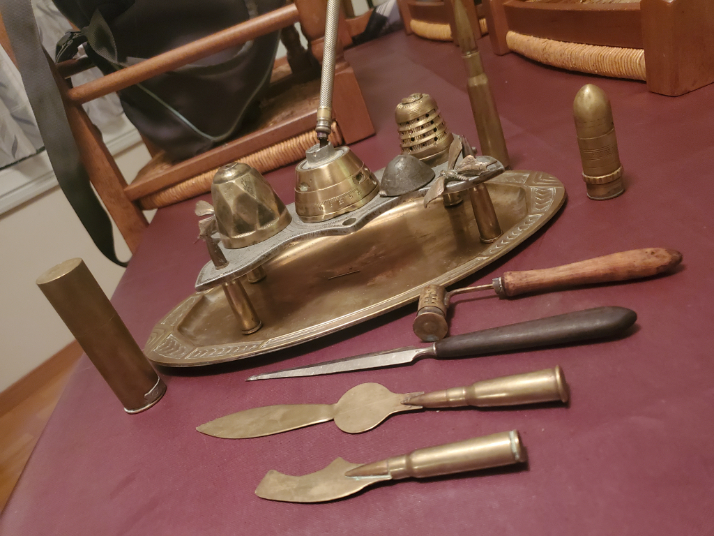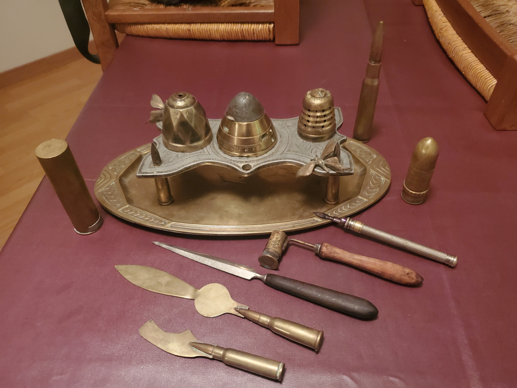La première approche d’un professionnel du marché de l’art est visuelle. Nos équipes étudient dans un premier temps les différentes photographies de vues d’ensemble et de détails envoyées par le déposant avec sa demande : Ancrier guerre 14 18 avec accessoires.