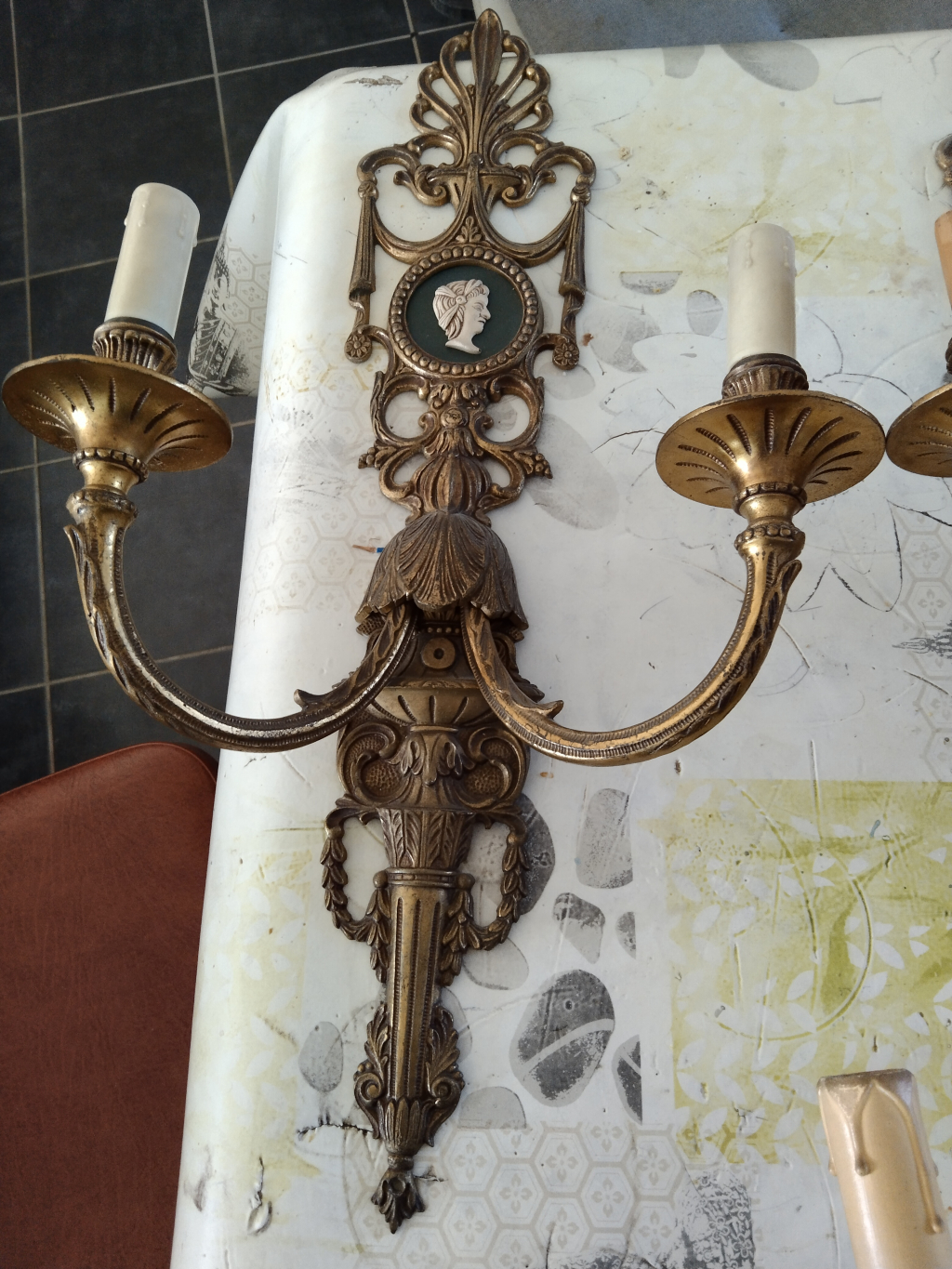France estimations a reçu la demande d'estimation suivante intitulée par le déposant : Appliques murales en bronze dont une paire Louis xv un miroir noir et or 2 cendriers cristal.