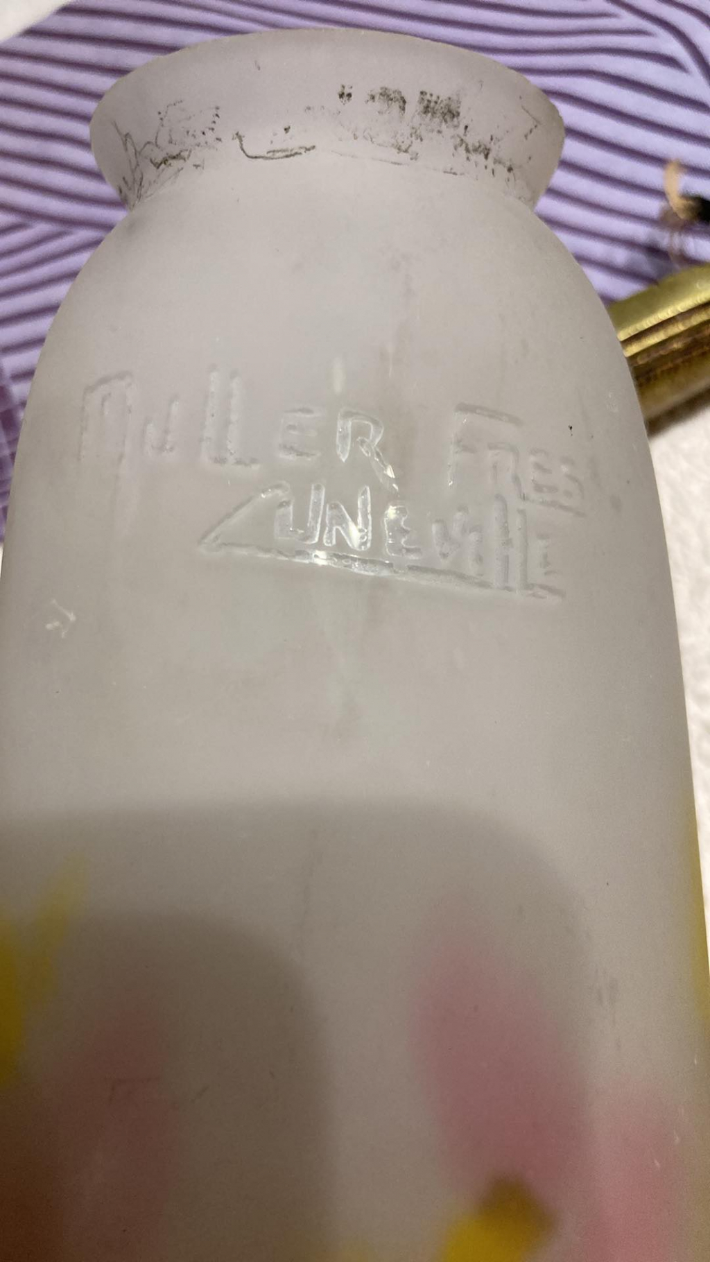 "lot d'appliques tulipe dont deux avec support bronze, signé Muller freres uneville"