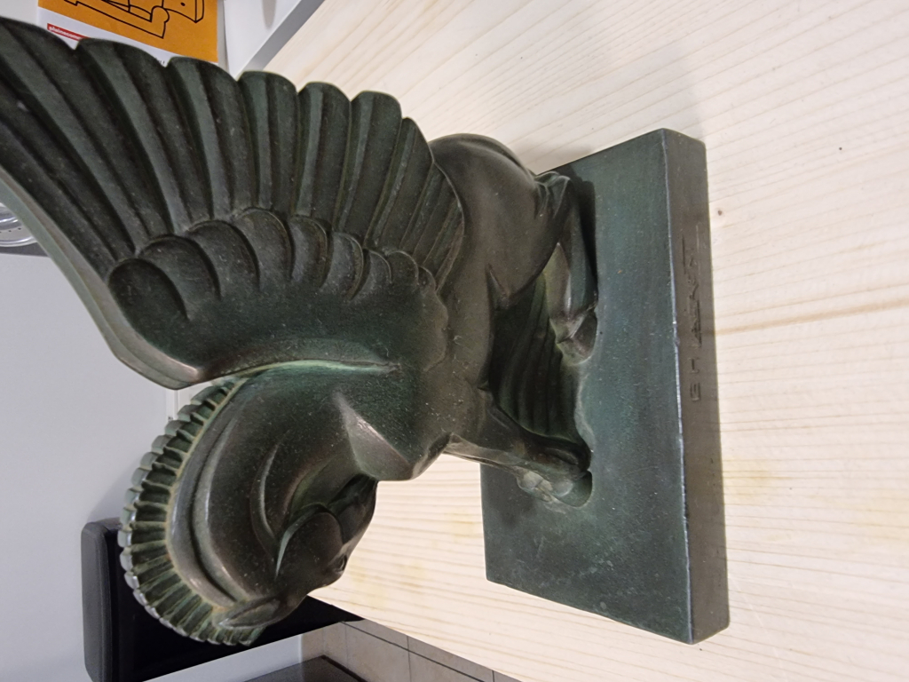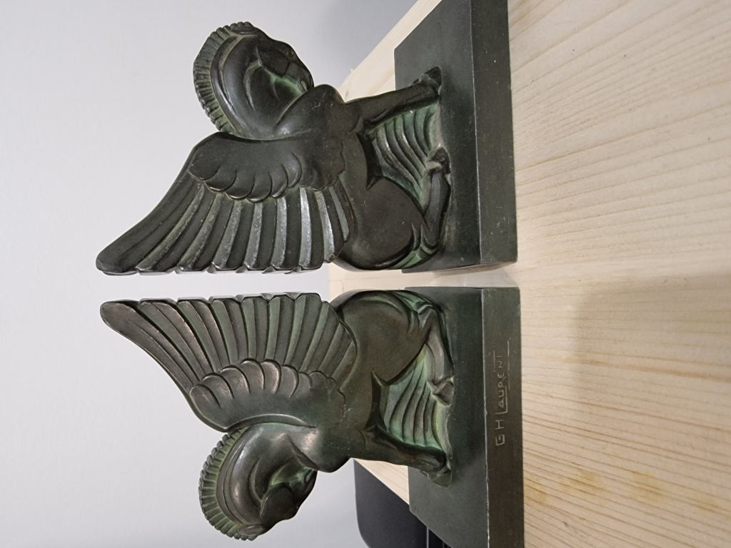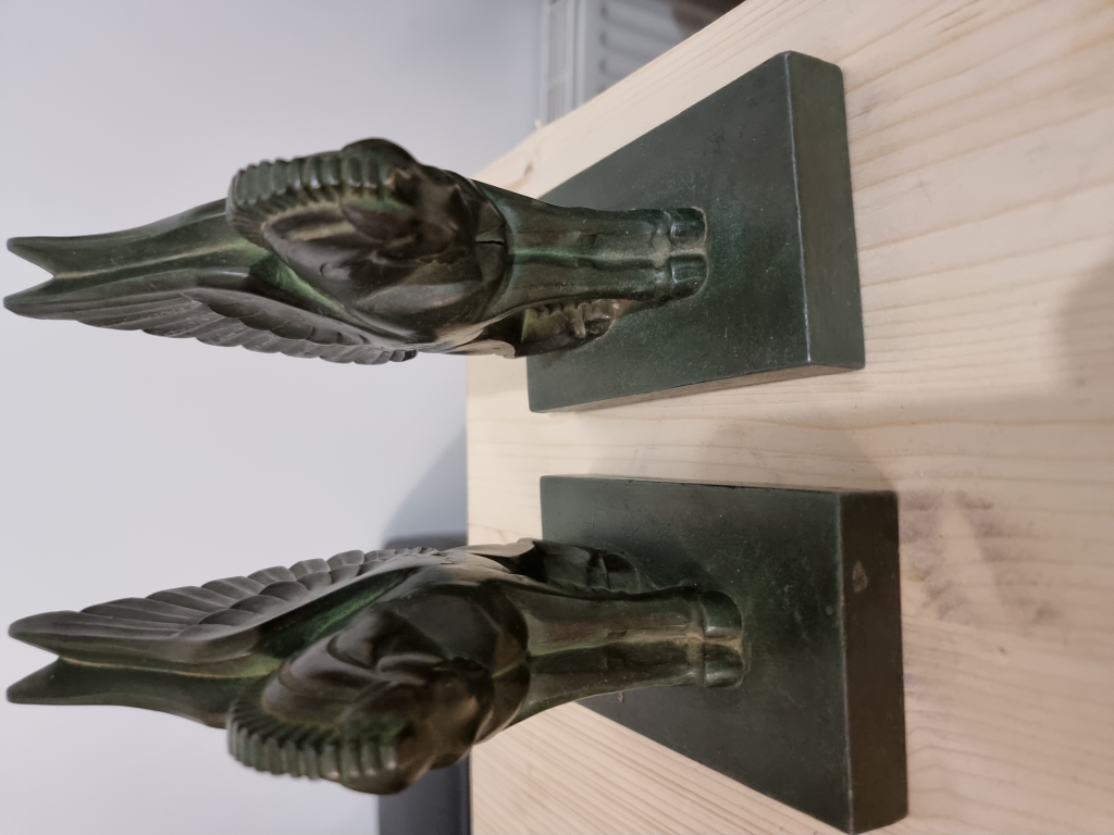 "Deux serre livres bronze sur socle marbre signés par l'artiste."
