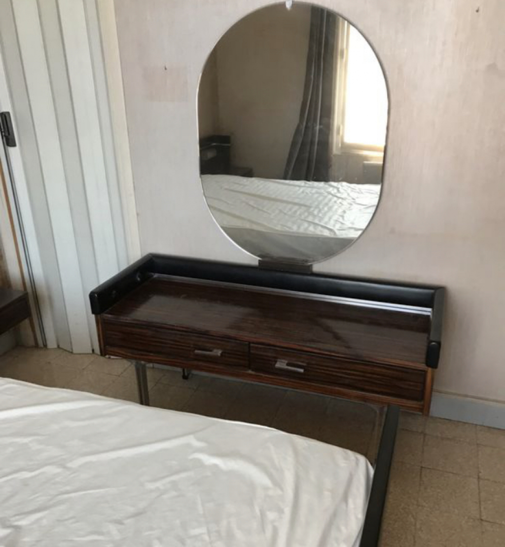 "Bonjour J’ai une Coiffeuse des années 70 , style Space age. Elle est composée d'un plaquage en ébène de macassar, pieds et poignées en aluminium et gainage en vinyle Elle est en très bon état Long 126cm Prof 45cm Haut 59cm le miroir peut etre enleve Est ce que ct bien pourrait vous intéresser et à combien l’estimeriez vous Merci"