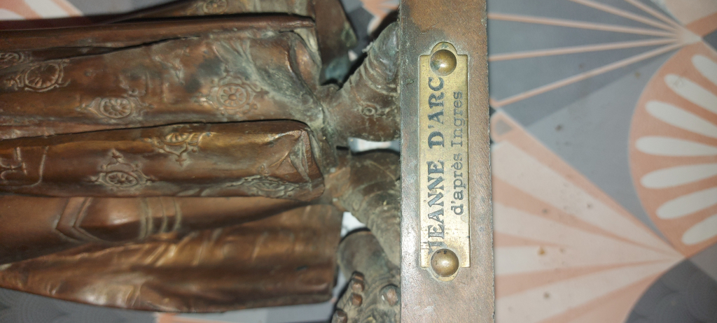 "Statuette de Jeanne d'arc qui mesure environ entre 30 et 40 cm, en bronze"
