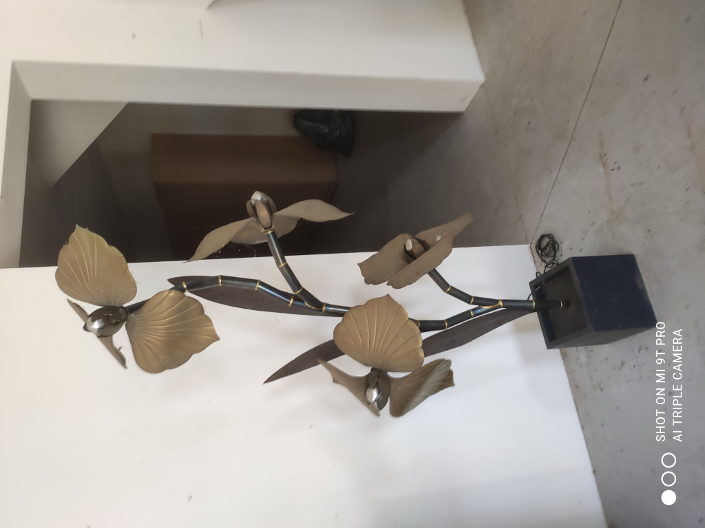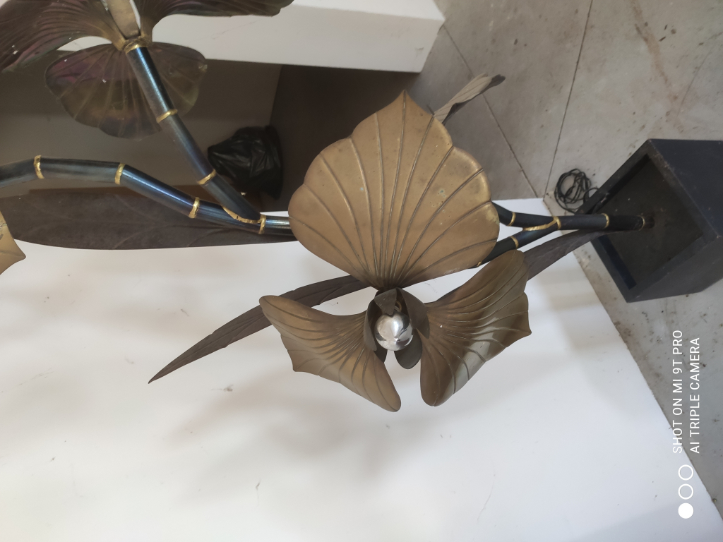 "Bonjour ce lampadaire est dans cette famille depuis au moins trois générations les tiges sont vertes et dorés les feuilles sont en laiton je pense le lampadaire fonctionne pas de signature cordialement S lecetre"