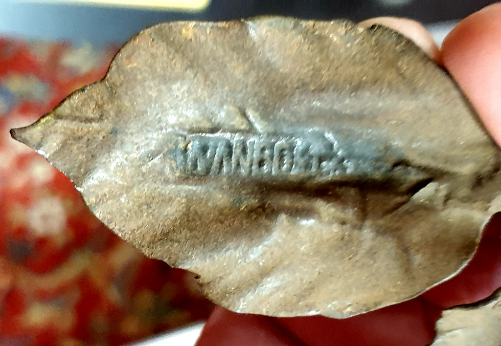 "Lampe à poser de style Art Nouveau avec pied tige d'inspiration végétale reposant sur un ensemble de feuillages avec une rose au centre. Corolle d'inspiration feuilles de muguet. Sur l'une des feuilles du pied se trouve une signature que nous avons du mal à décrypter et à identifier. Elle est enserrée dans un cartouche et commence par WA. Pourrait -il s'agir d'une production de William Arthur Smith Benson ?"