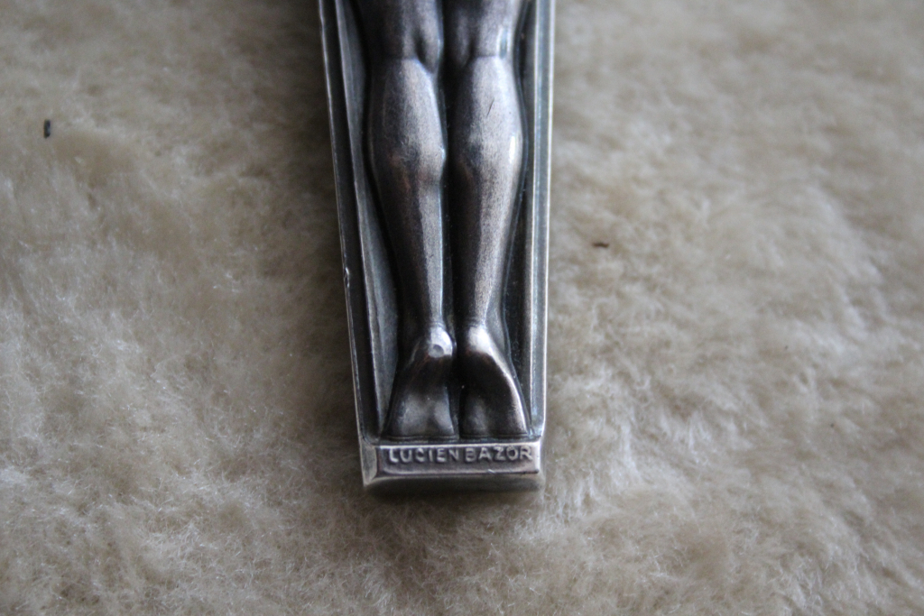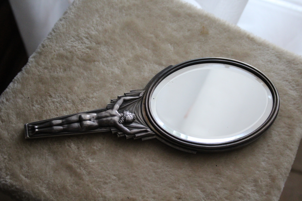 "miroir Lucien BAZOR poids 493 g en bronze blanc femme nue de dos"