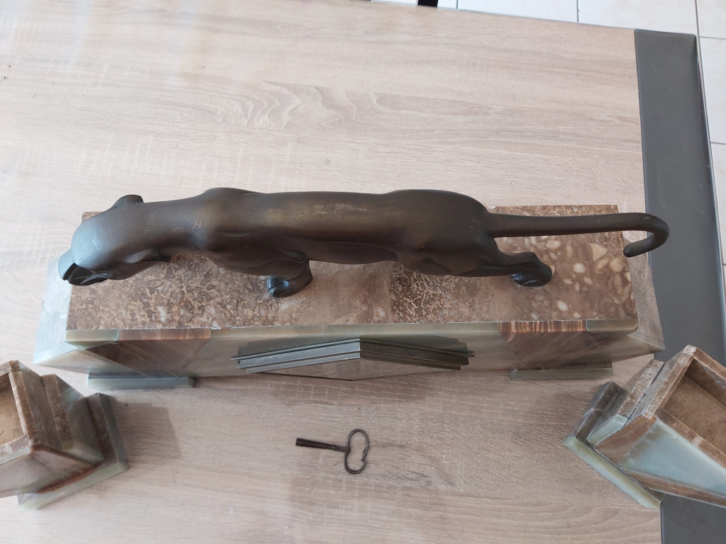 France estimations a reçu la demande d'estimation suivante intitulée par le déposant : Panthère en bronze sur pendule marbre art déco.