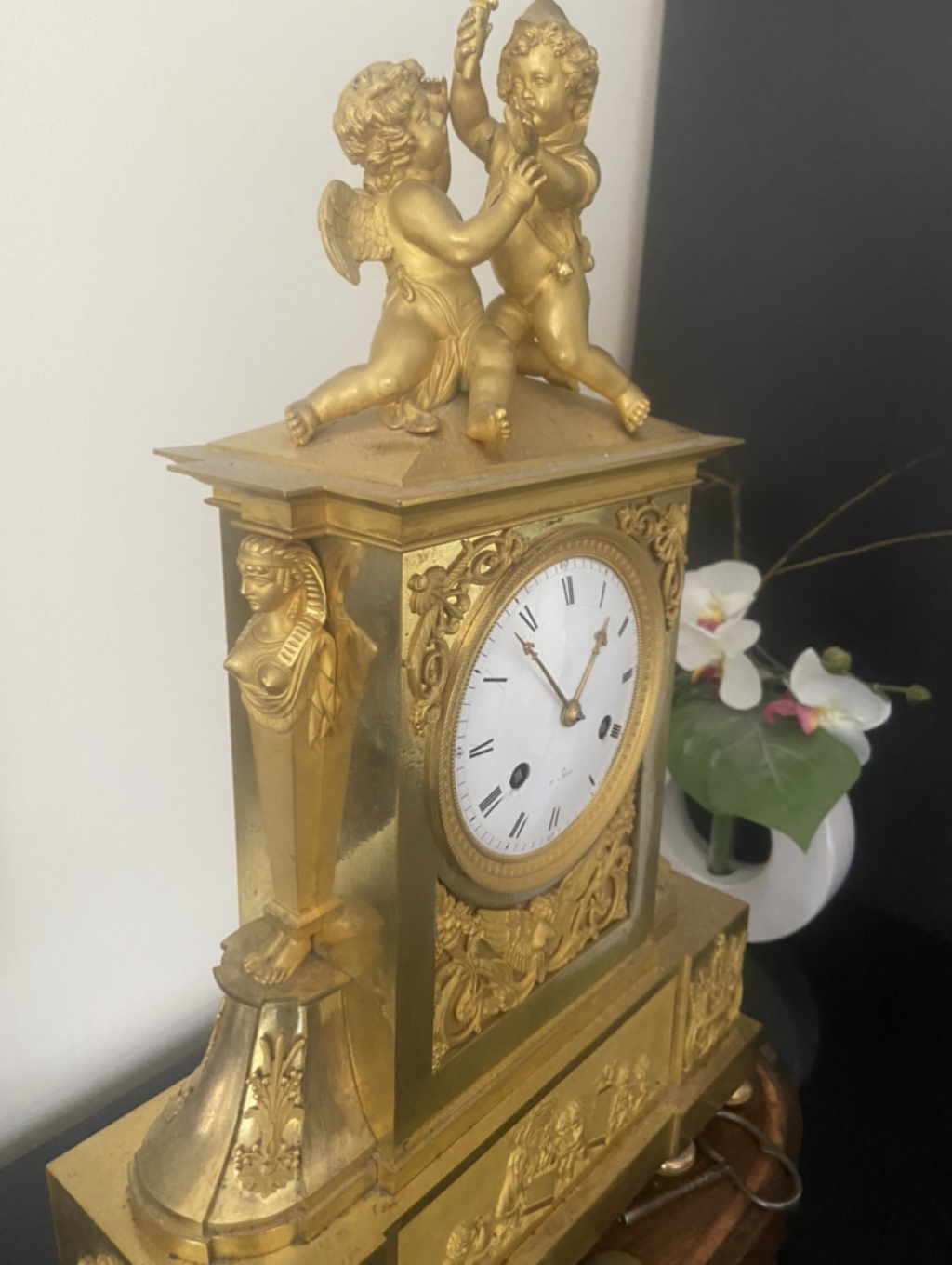 La première approche d’un professionnel du marché de l’art est visuelle. Nos équipes étudient dans un premier temps les différentes photographies de vues d’ensemble et de détails envoyées par le déposant avec sa demande : pendule ancienne bronze.