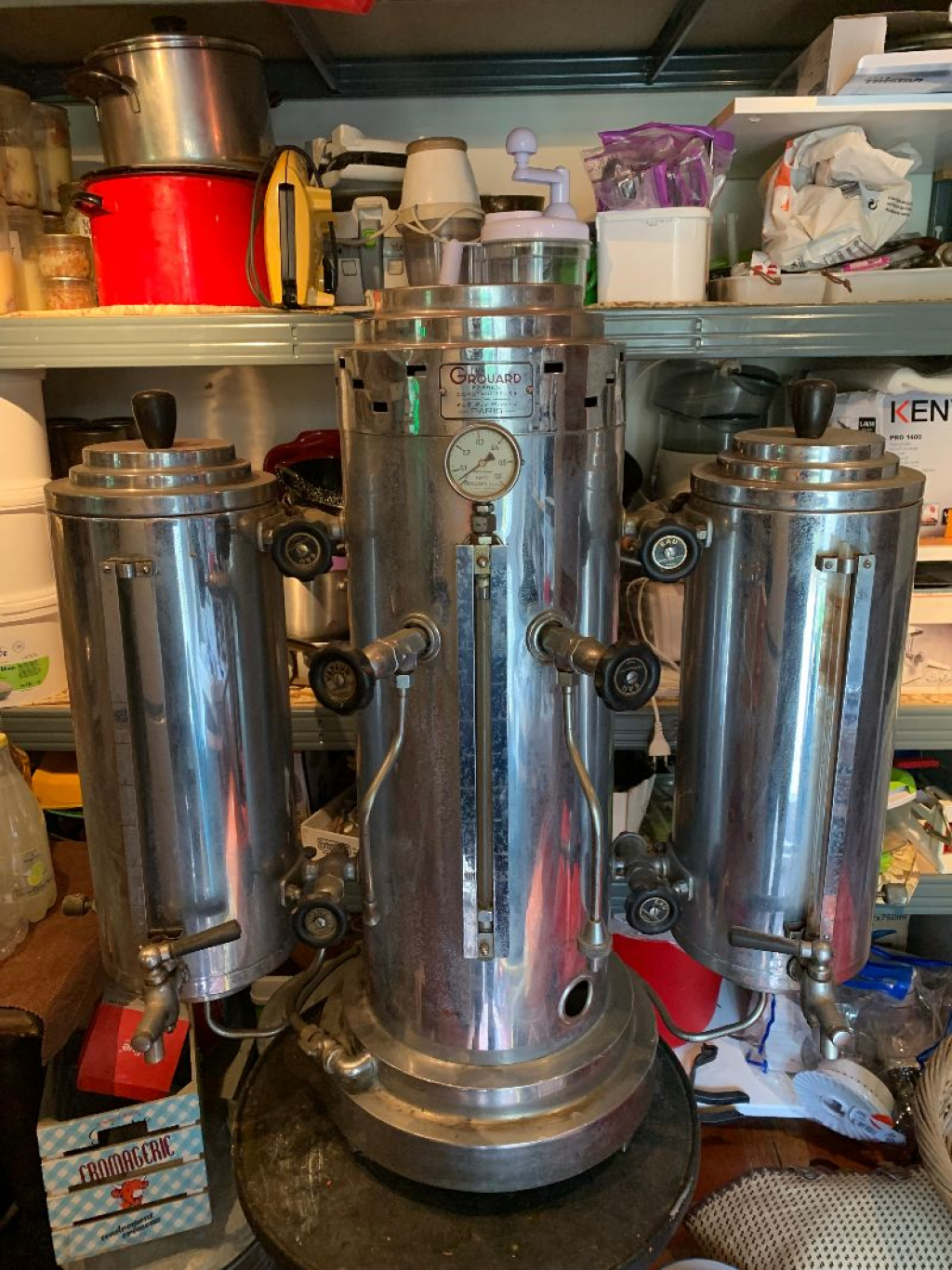 "Ancien percolateur grouard Pas en état de marche sauf révision Manque un tube en verre Fonctionnait au gaz Belle présentation une fois astiqué (pas comme sur la photo)"