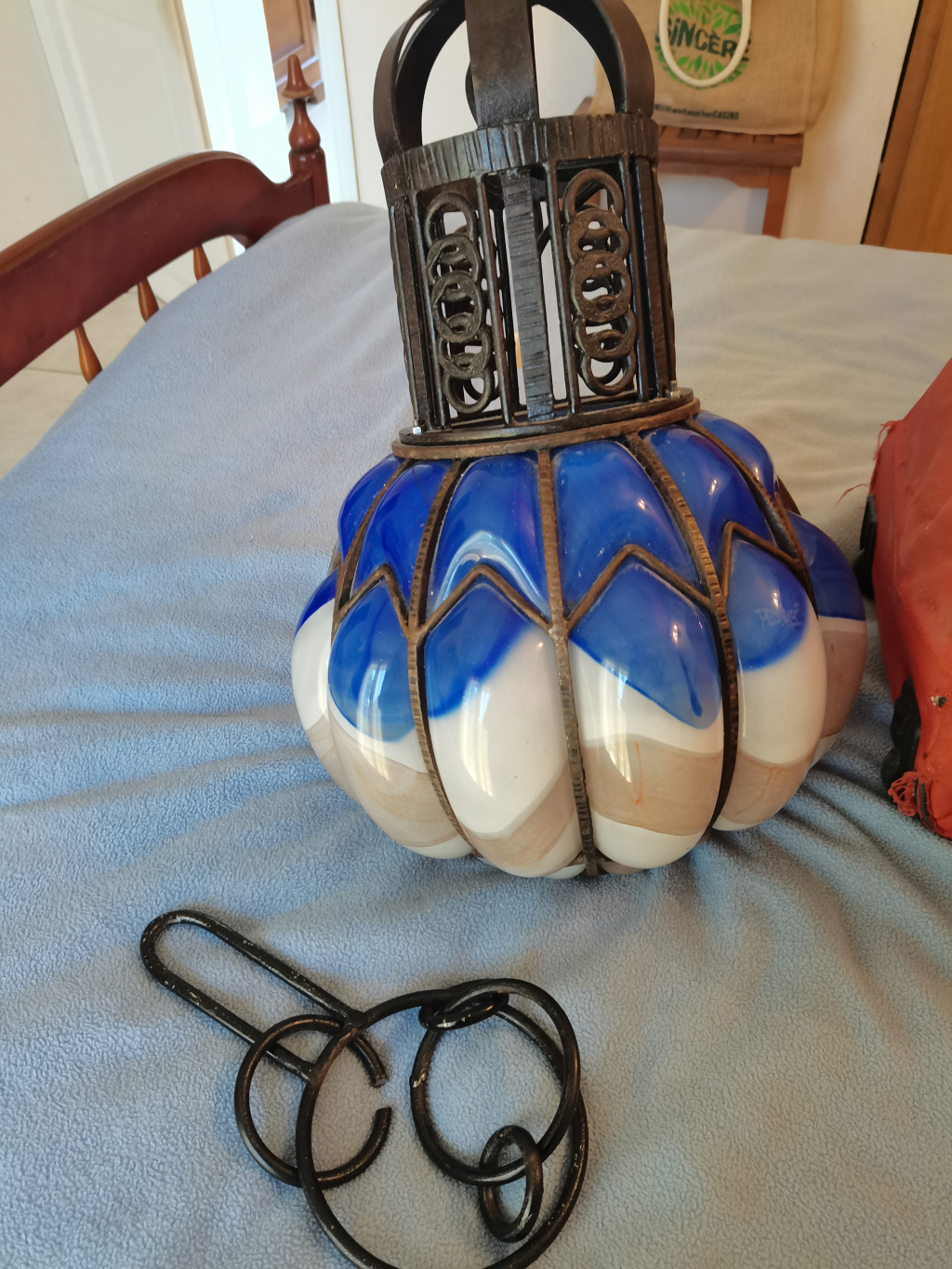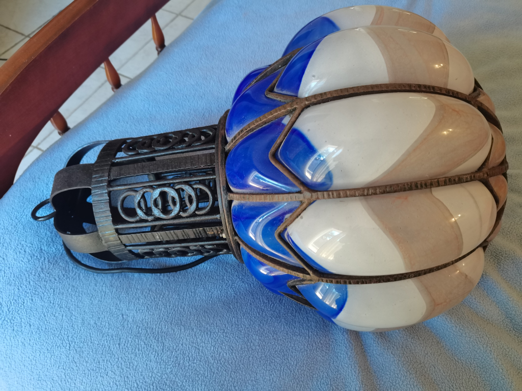 "Plafonnier ancien fabriqué a Nancy, poids 20kg, en bronze et porcelaine."