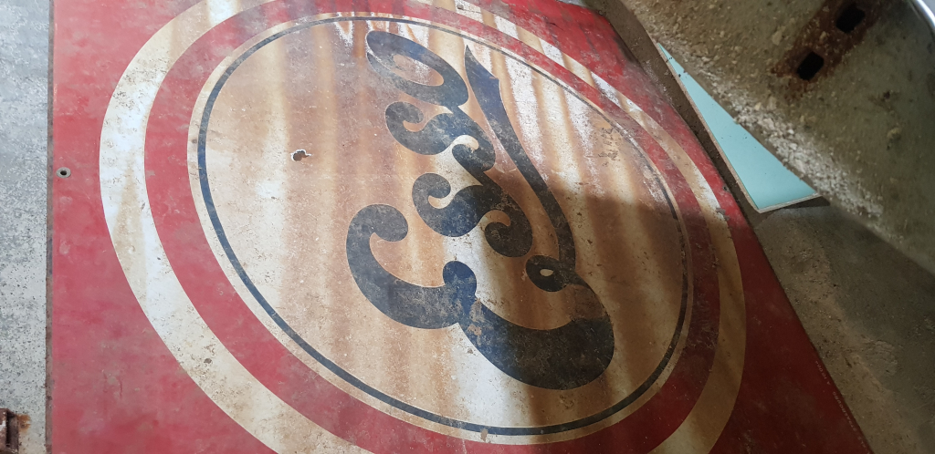 "Plaque tôle émaillée esso de 1935 1940 état moyen mais bien lisible, 1mx1m,"