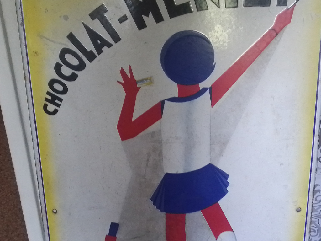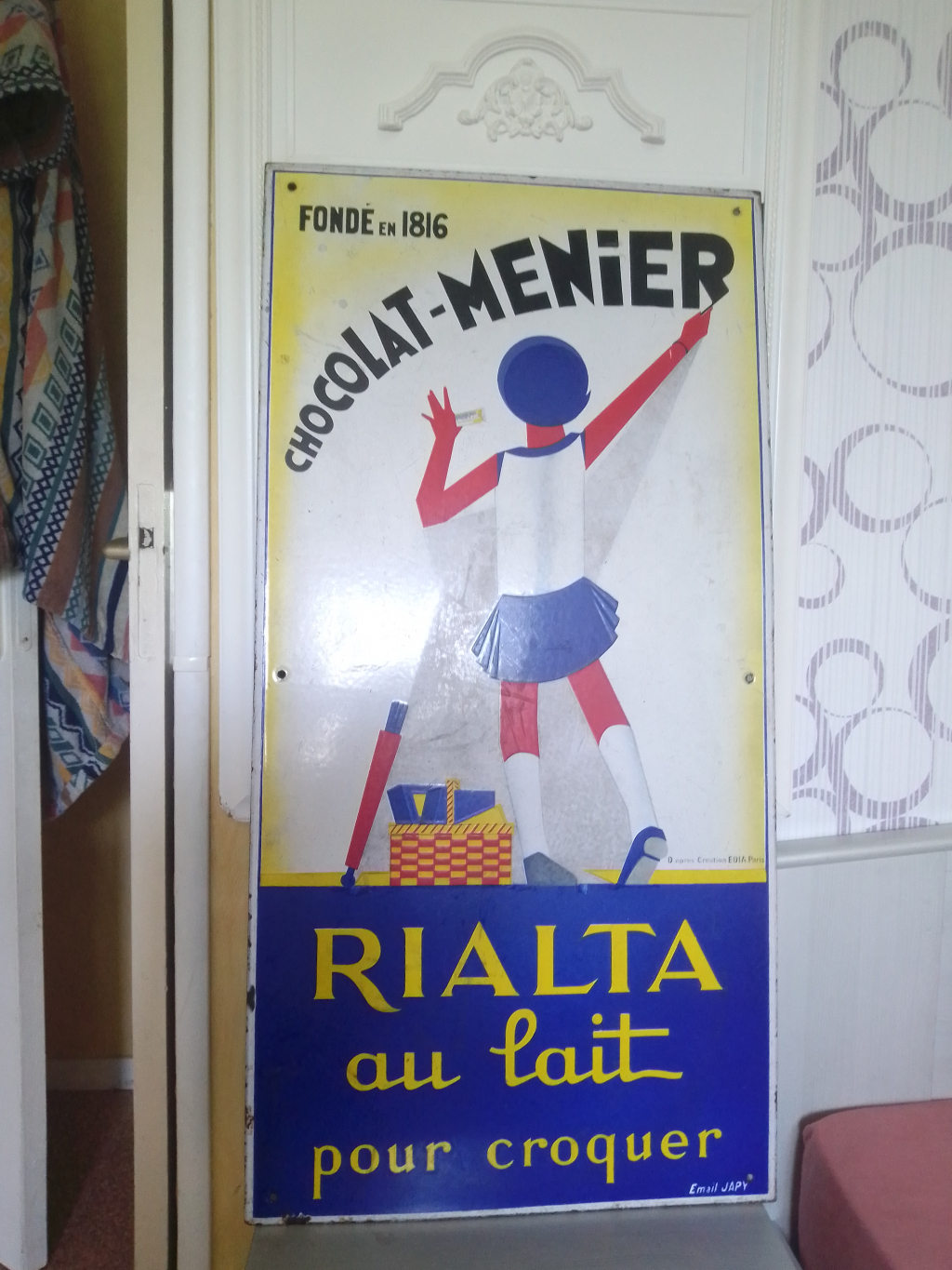 "Bonjour, voici une affiche publicitaire plaque émaillée chocolat menier, pour la vendre je veux une estimation , très cordialement."