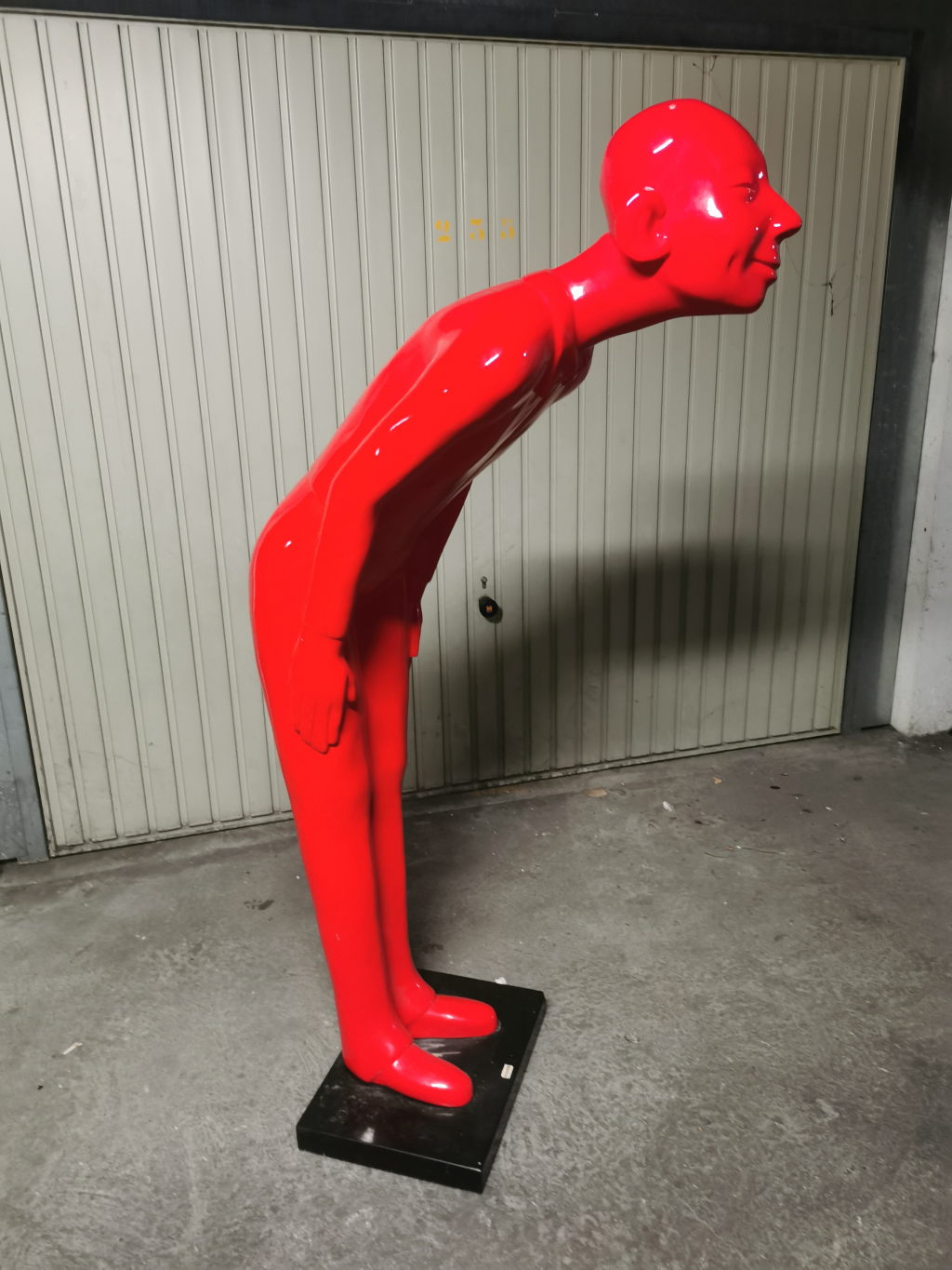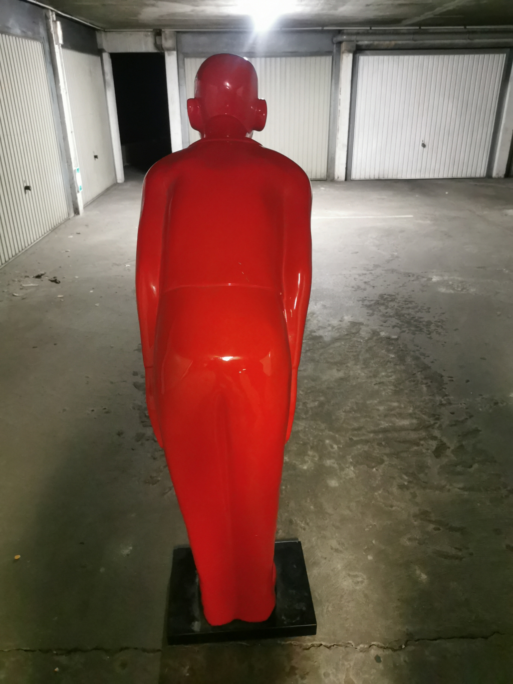 "statue DÉCO WELCOME GUEST XL ROUGE KARE DESIGN 1m65 Fibre de verre et marbre plusieurs fêlures mais pas cassée (bras..)"