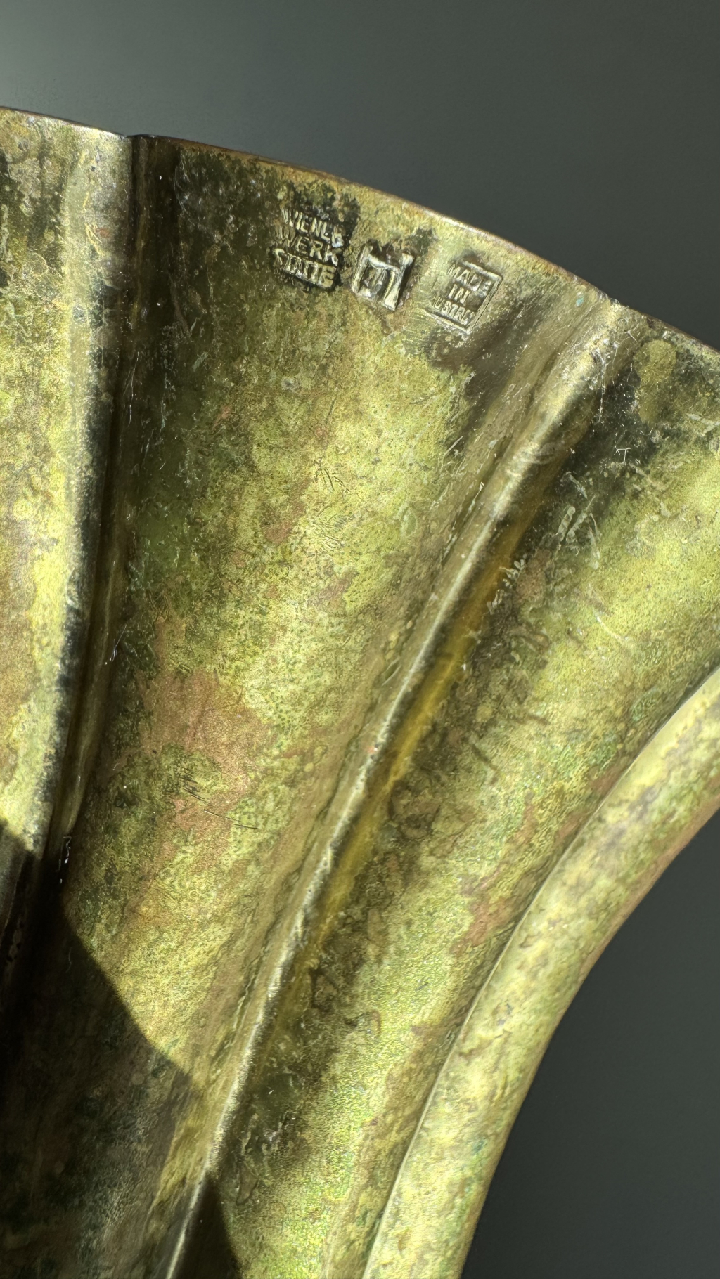 "Vase réalisé par Josef Hoffmann (1870-1956) pour la Wiener Werkstatte. Il mesure 29,2 cm sur 15,9 cm. Selon Sotheby's, ce modèle et des vases similaires ont été produits entre 1925 et 1931."