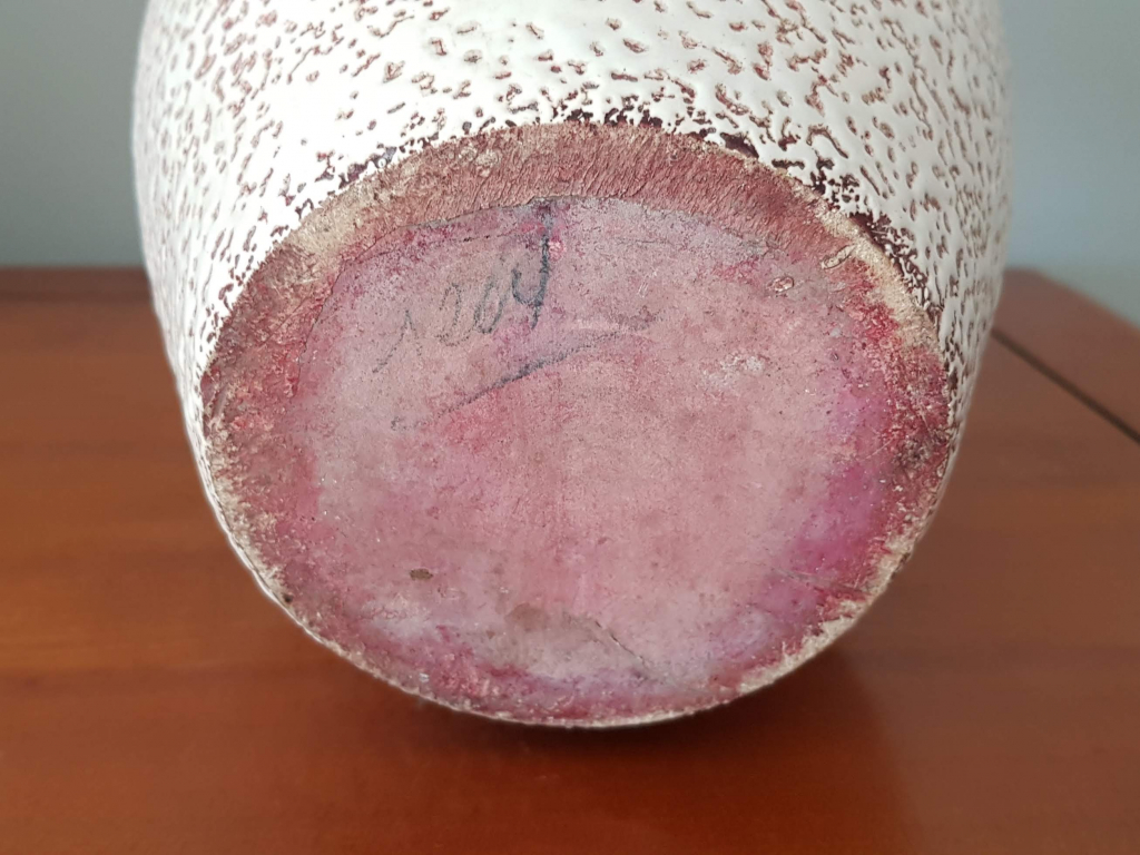"vase email blanc crispé avec motifs géométriques en très bon état hauteur 24 cm diamètre supérieur 10 cm base 10 cm des chiffres sous la base"