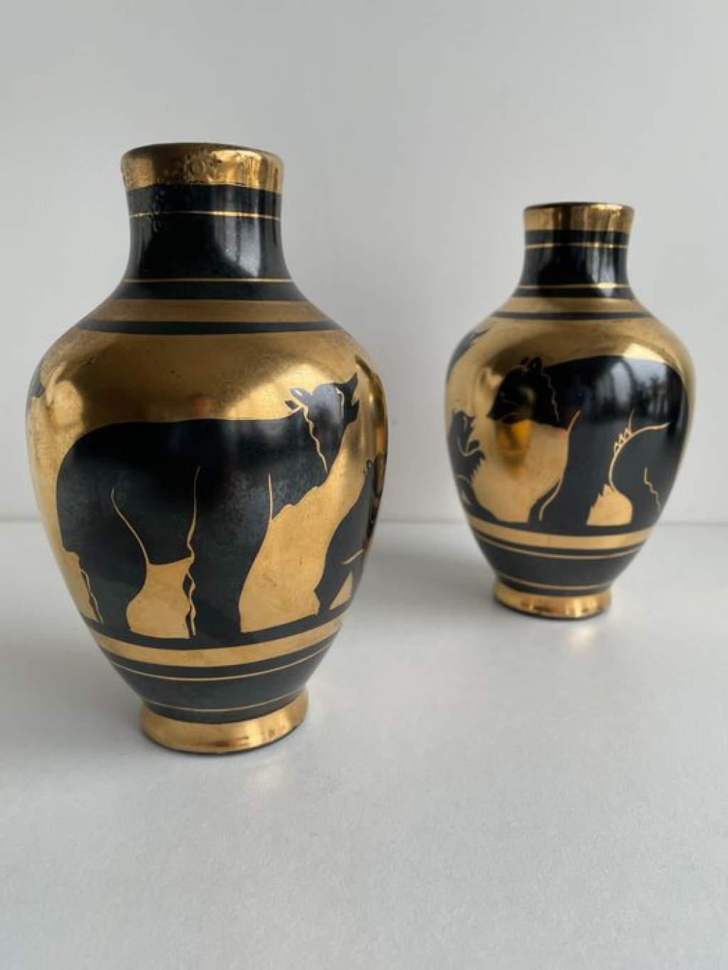 "Deux vases Charles Catteau, motifs ours, aucun défaut, très bon état pour ne pas dire excellent Décor 2127 Hauteur 17.5 cm"