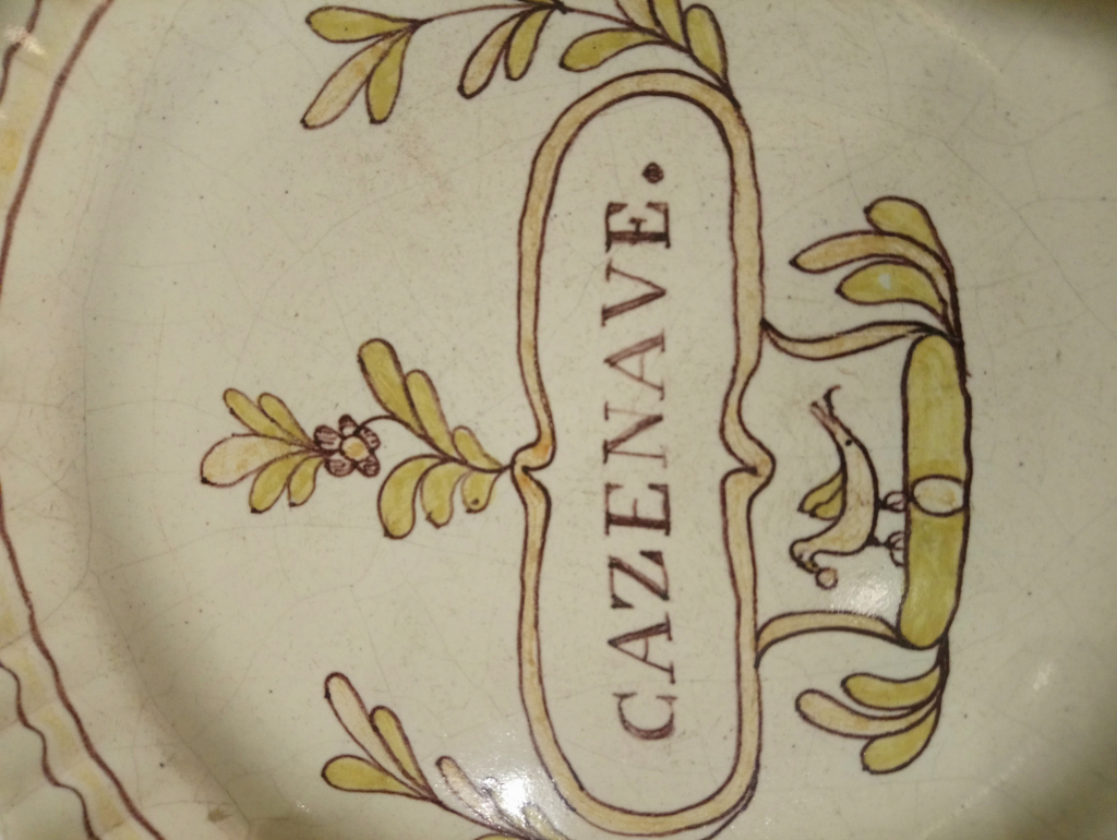 "Assiette moncaut avec inscription patronymique cazenave. Craquelures et deux eclats"