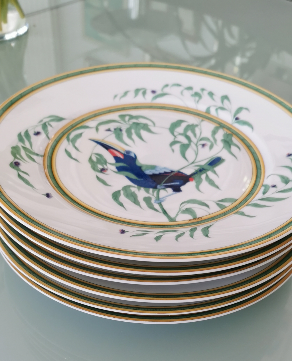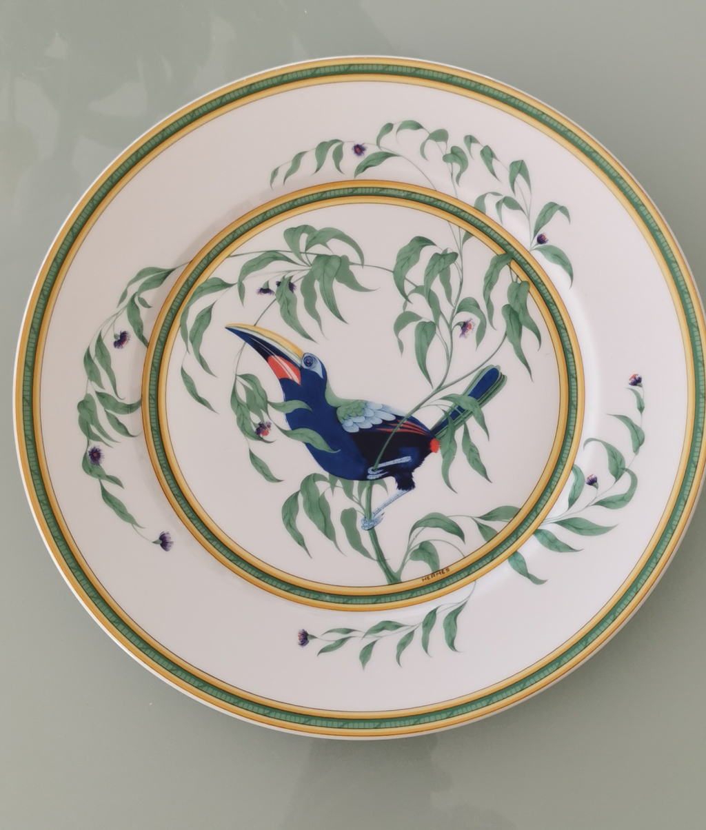 "Lit de 6 ou 12 assiettes hermes serie toucan, 25 cm"