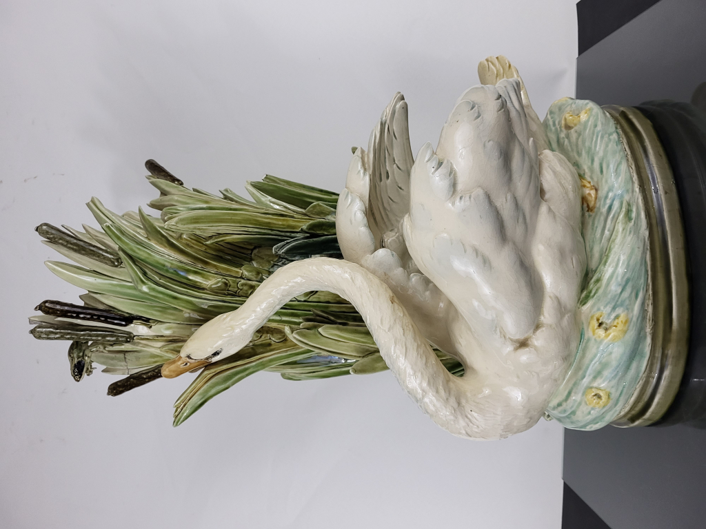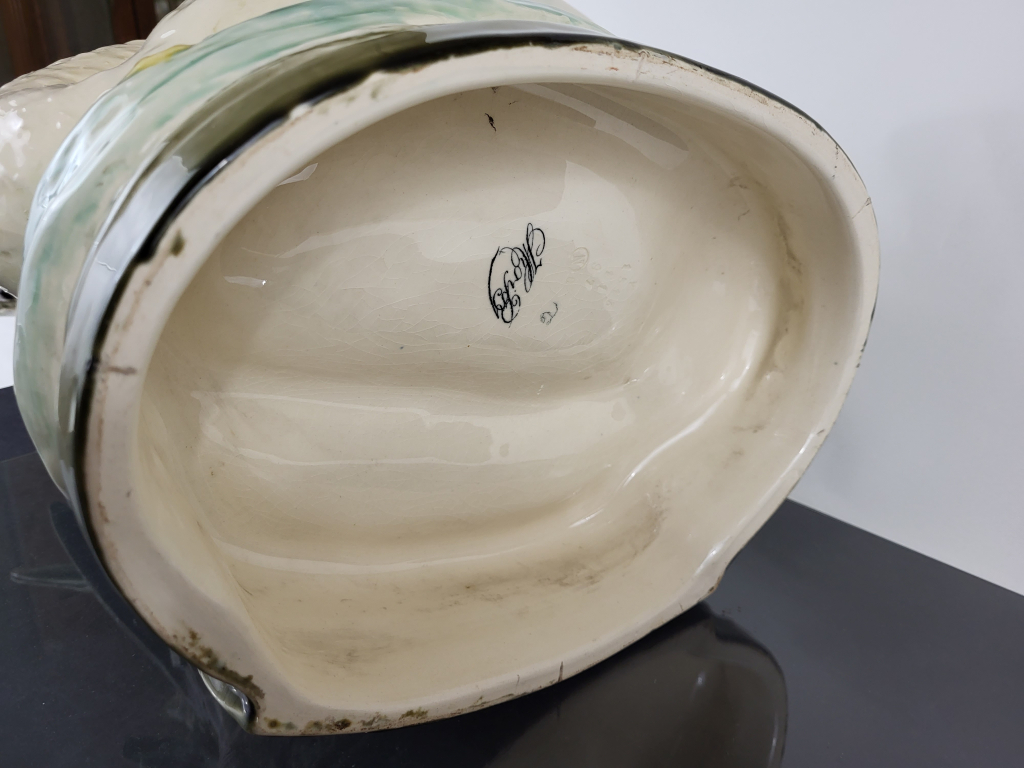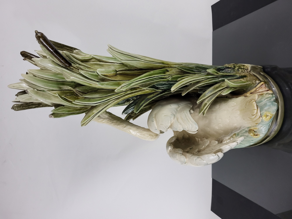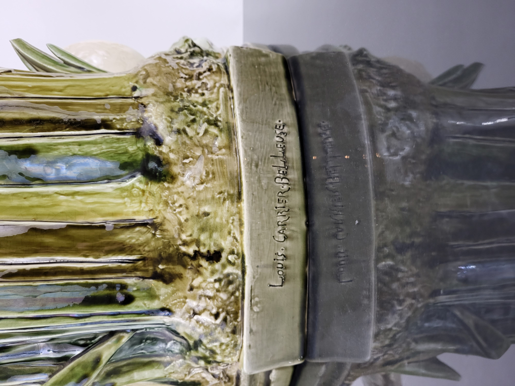 "Importante Céramique de Carrier Belleuse pour Choisy le Roy. Plusieurs manques en haut des tiges et manque la cuisse de grenouille. Restaurations à prévoir"