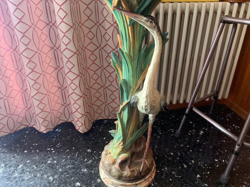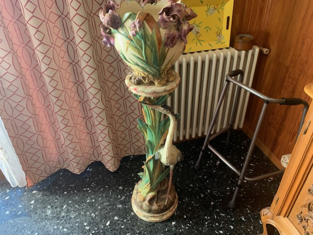 "Delphin Massier Majolica Heron (H 95 cm) Cache pot (H 35 cm) Très bon état"