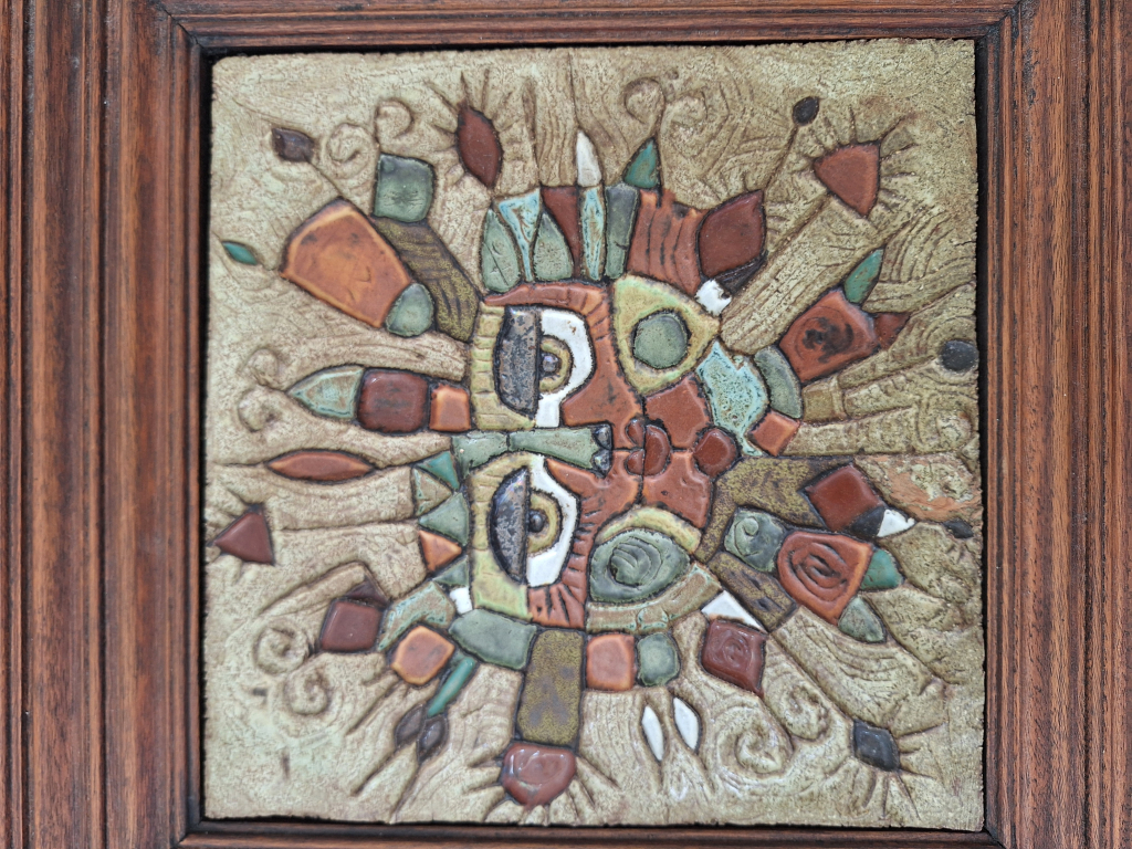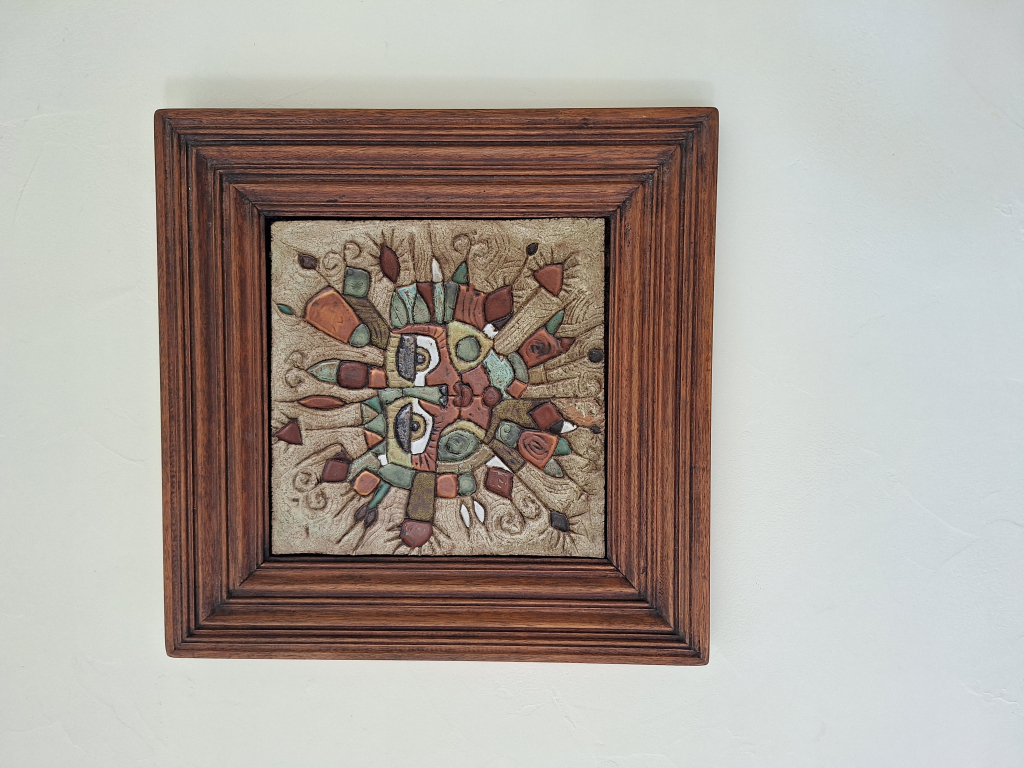 "Tableau acheté à Anduze par mes parents dans mes années 1970. Céramique encadrée de bois. Etat impécable"