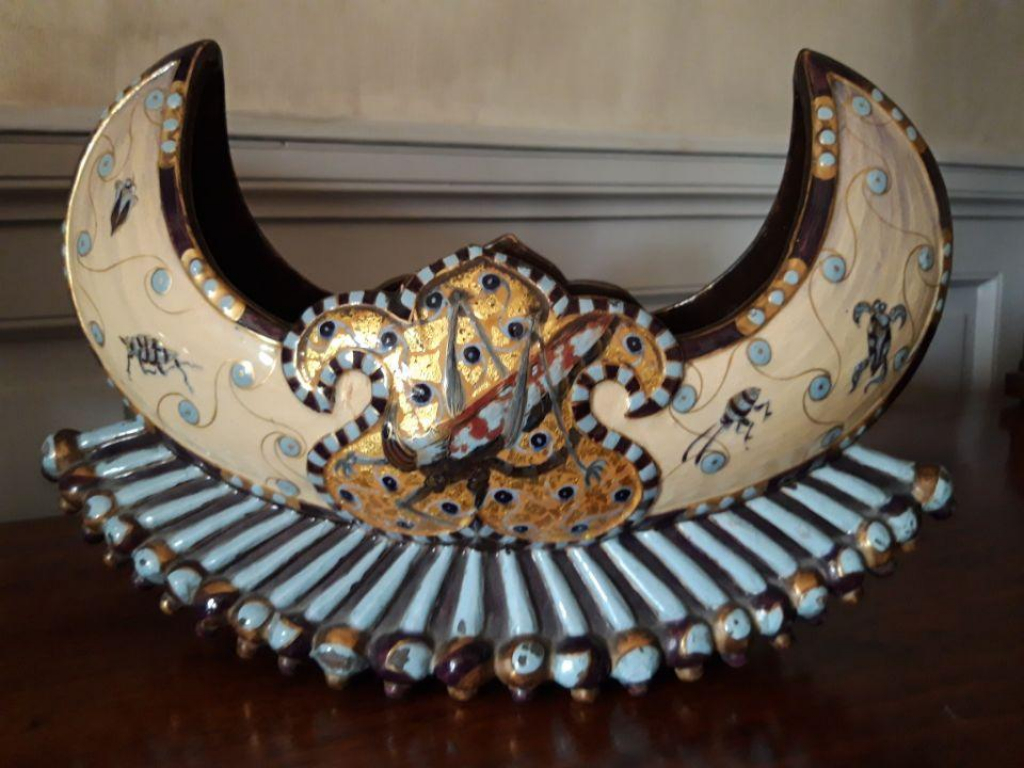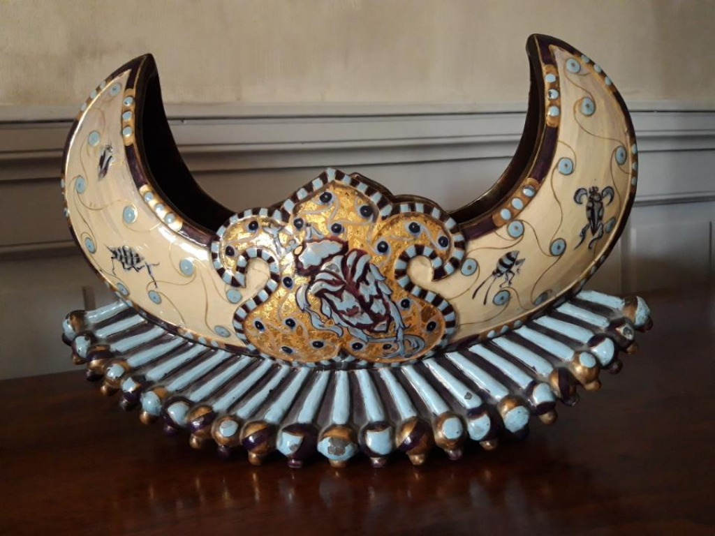 "Faïence corbeille signée Emile Gallé Nancy en parfait état. L=39cm l=13,5cm H=25cm"