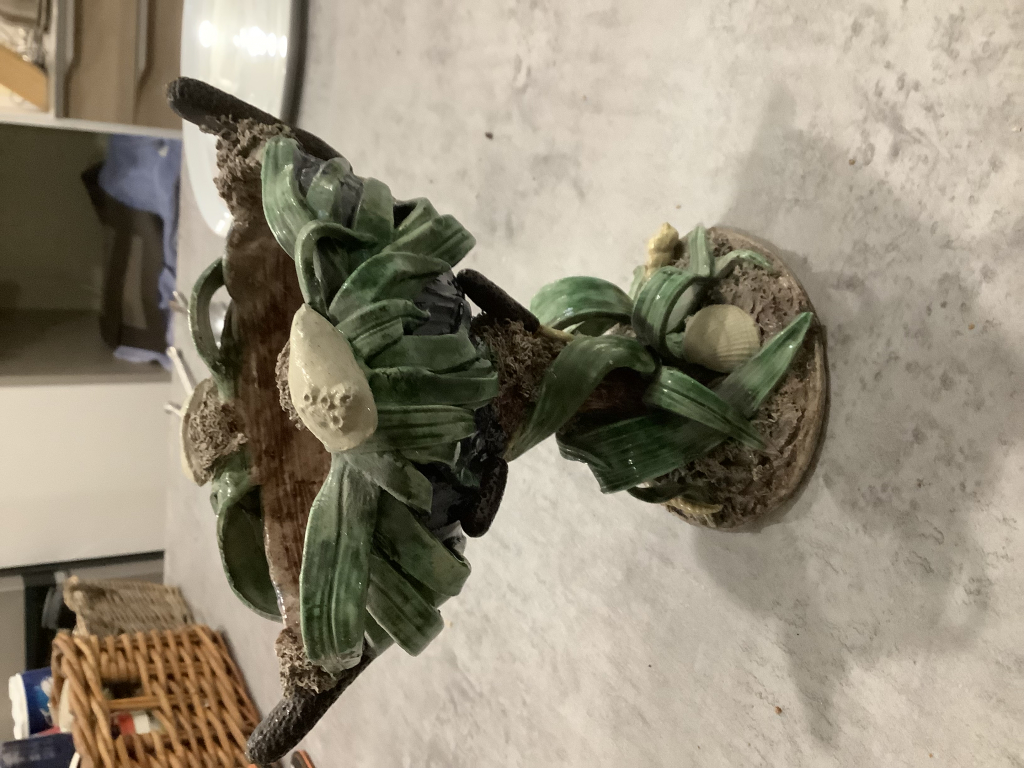 "Coupe en barbotine à motif végétal et coquillages"