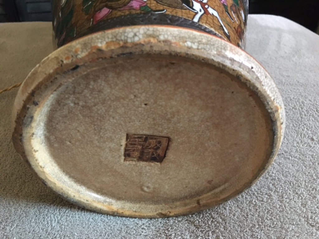 "Bonjour, Je souhaiterais faire estimer une lampe en porcelaine de Chine. J’aimerais savoir de quelle époque elle est et sa valeur. Je vous envoie la photo de la marque sous cette lampe. D'avance, merci"