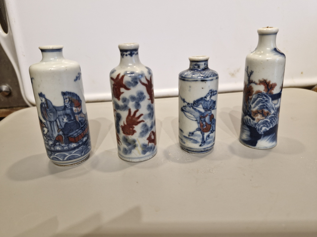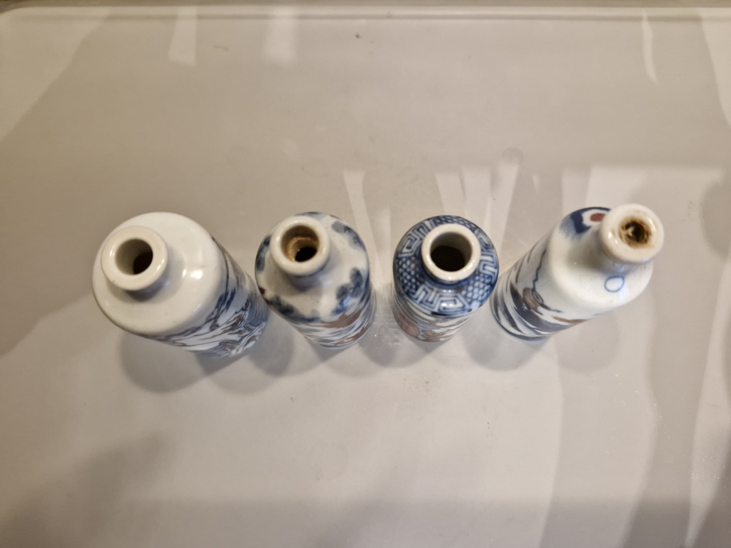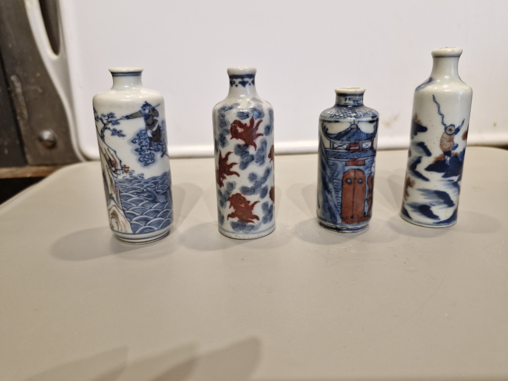 "Lots de 4 Tabatières anciennes, non signées, blanche, bleu et rouge"