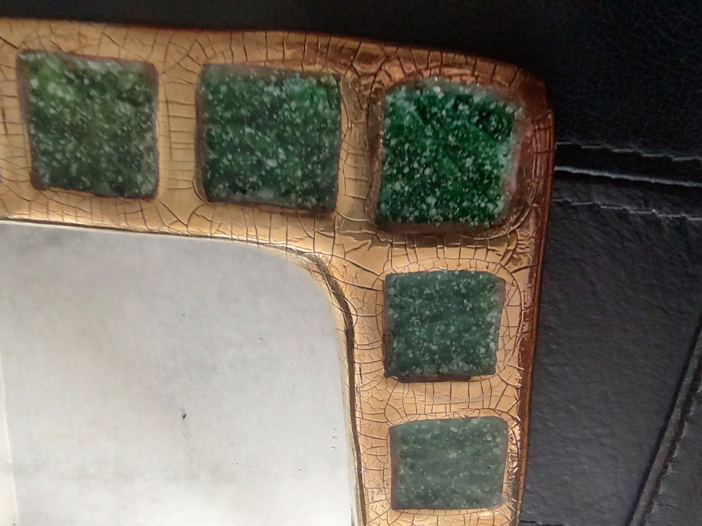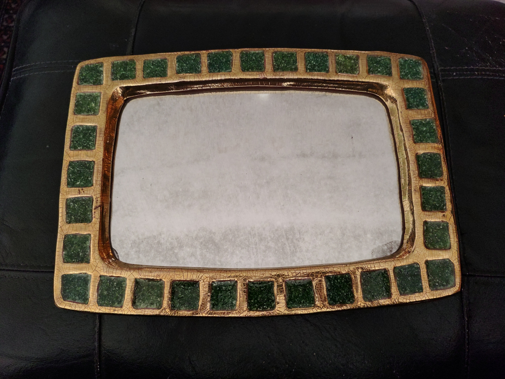 "Miroir MiTe Espelt, 32/23cm en parfait etat,annees1960-1970 ceramique en parfait etat miroir legerement pique feutrine au dos en parfait etat"