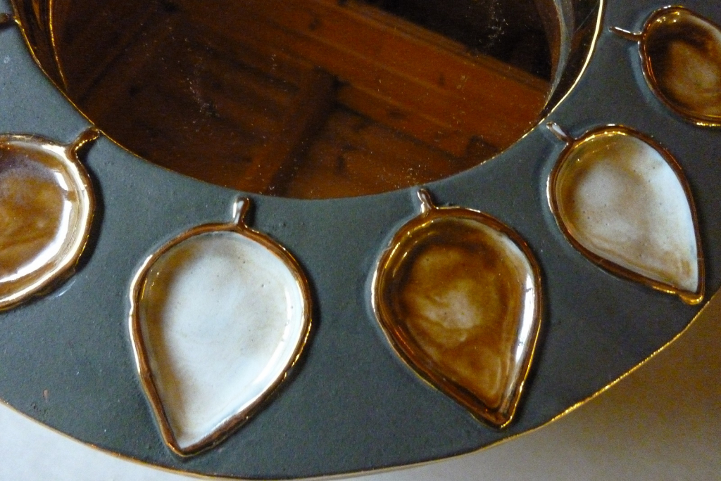"MIroir rond MITHE ESPELT : - état neuf - diamétre 25 cm - diamétre miroir 14 cm"