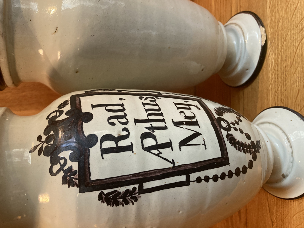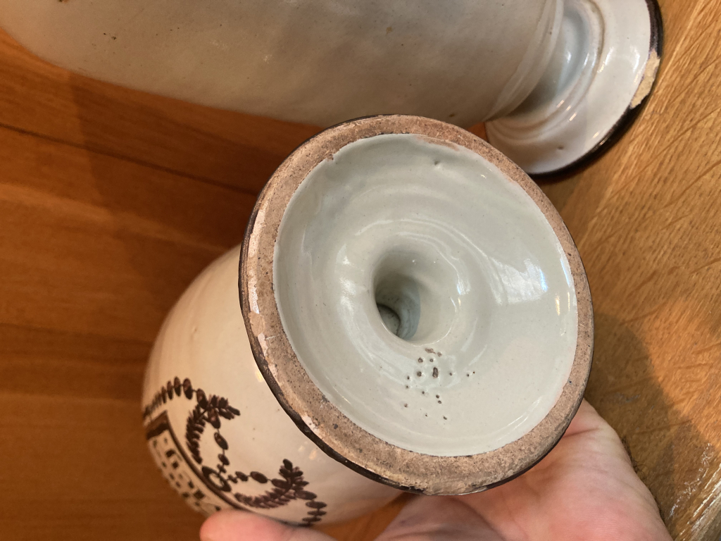 "Paire de pots à pharmacie, très anciens ( éclats )"