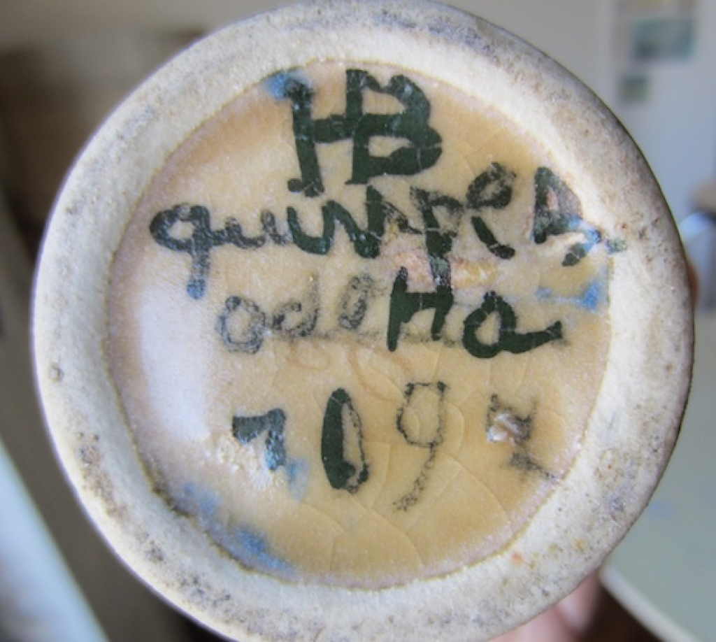 La première approche d’un professionnel du marché de l’art est visuelle. Nos équipes étudient dans un premier temps les différentes photographies de vues d’ensemble et de détails envoyées par le déposant avec sa demande : petit vase HB Quimper Odetta grès Art Déco.