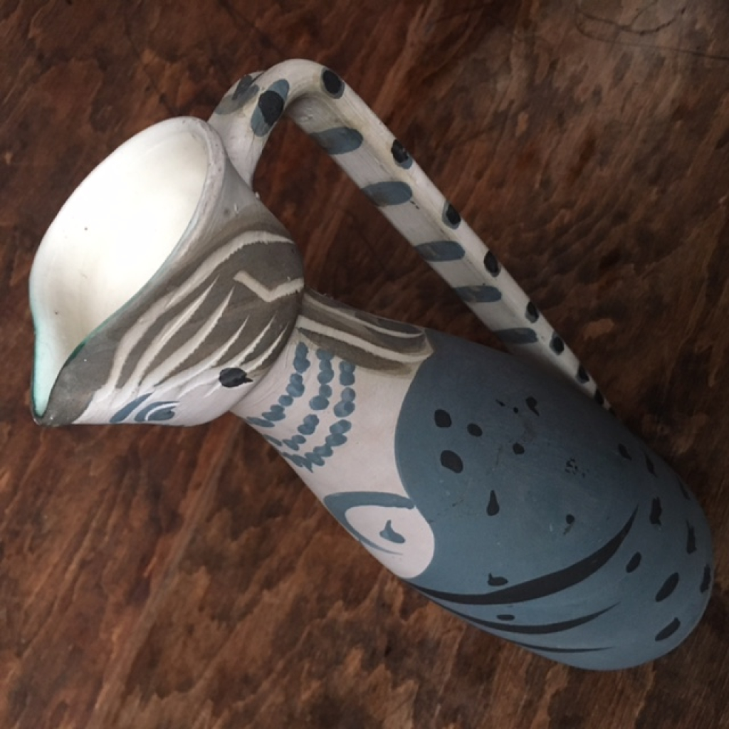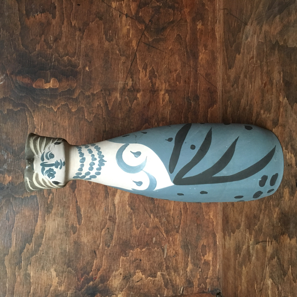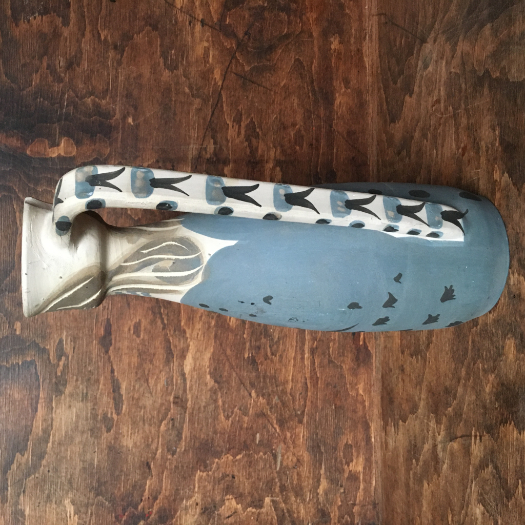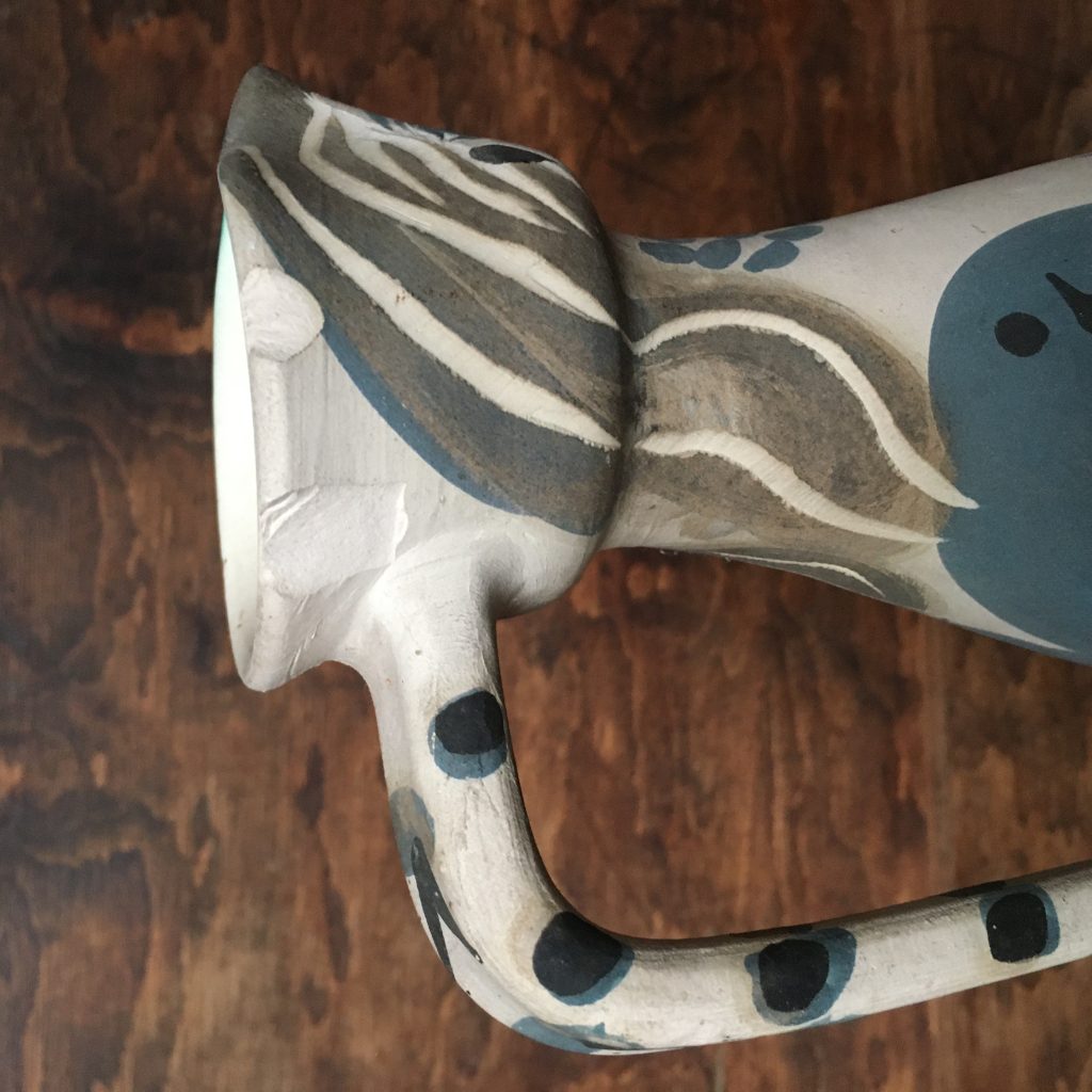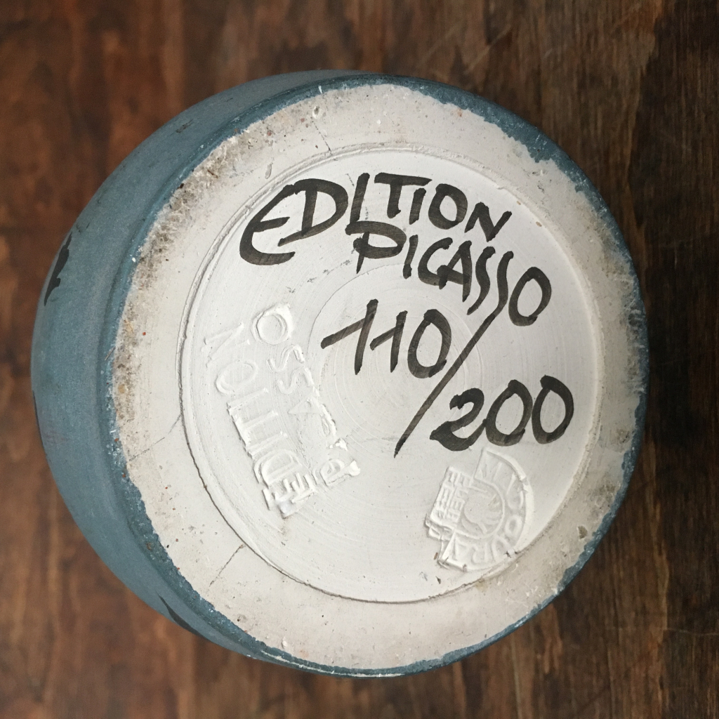 "Très joli pichet Femme bleue, Edition Picasso, Madoura, tirage 110/200. hauteur 31cm, chiné en 1986 dans une brocante, à noter, deux petites ébréchures arrière-haut"
