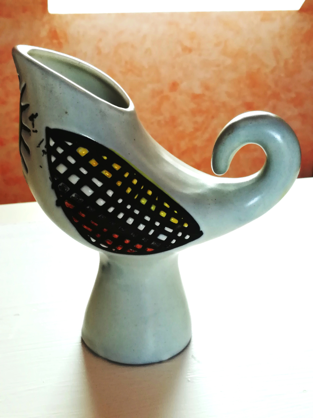 "Pichet forme oiseau signé Capron Vallauris"