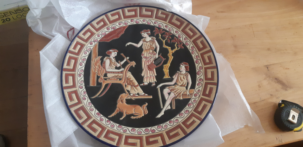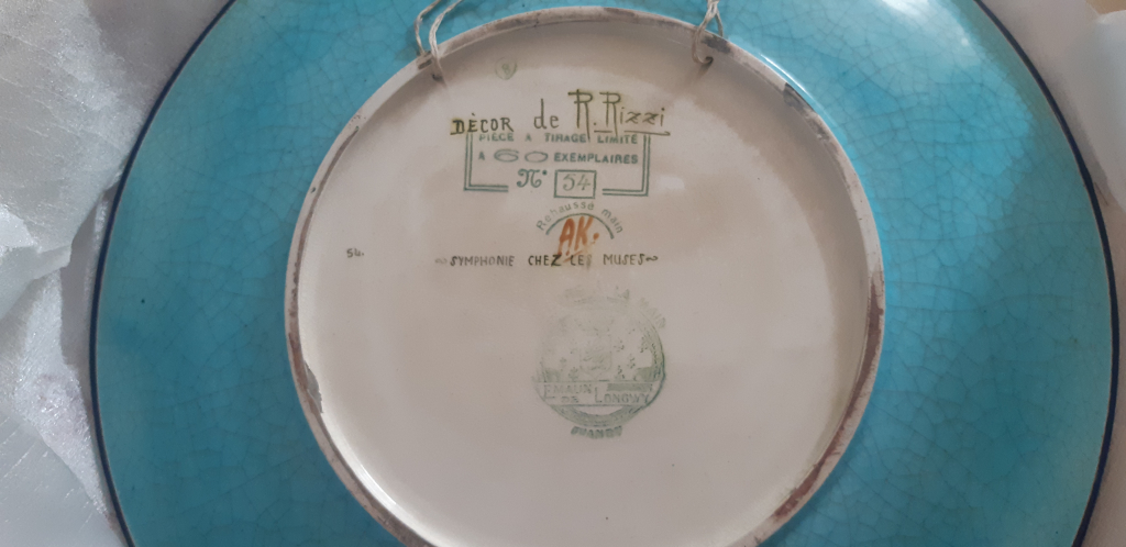 "representation de muses musiciennes decor rizzi faience de longwy (la paricularite bleu est au dos ) Numerote 60 exemplaires"