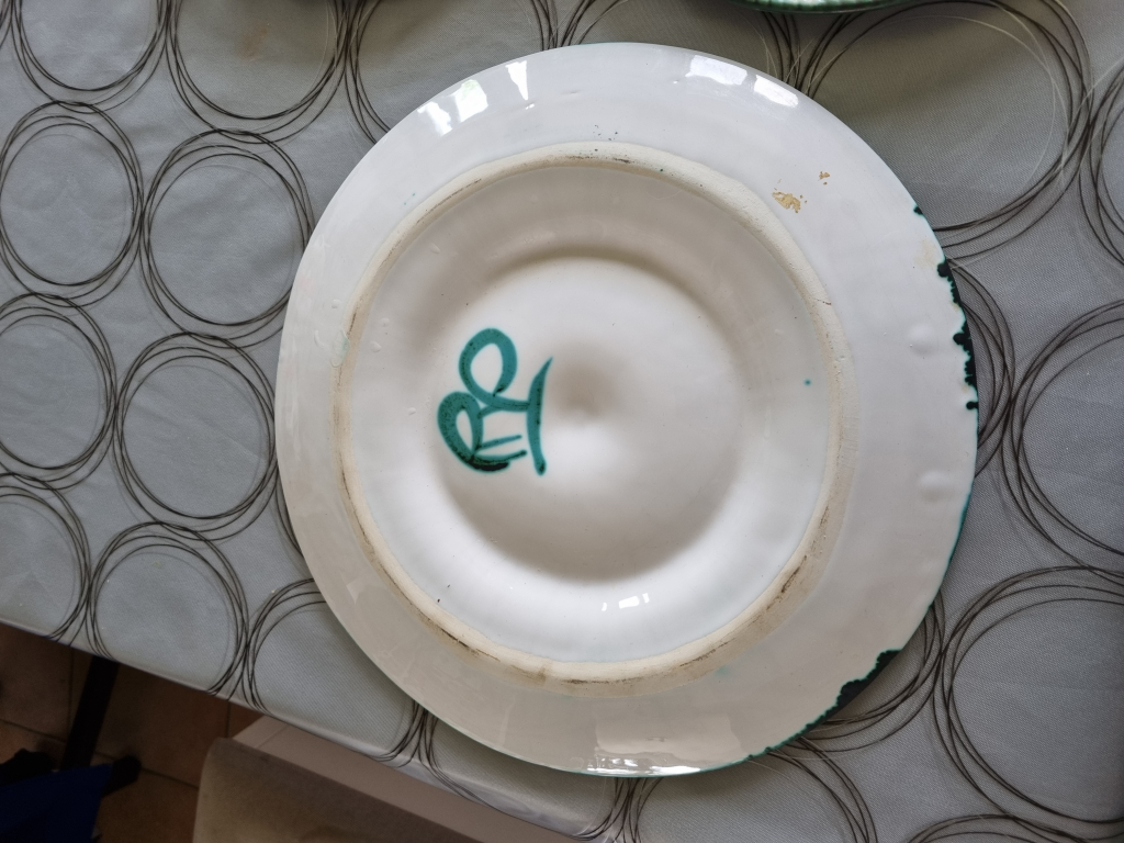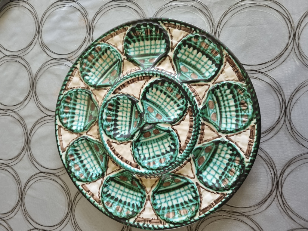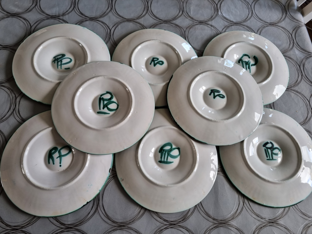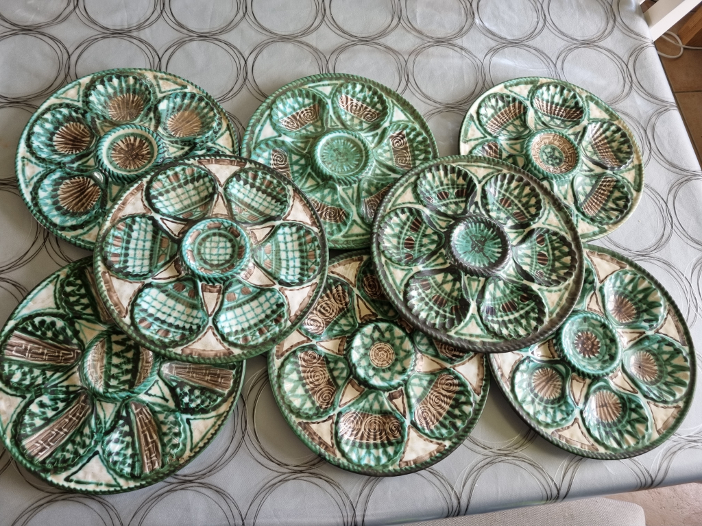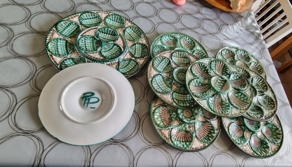 "Service a huitre comprenant 1 plat et 8 assiettes signer RP"