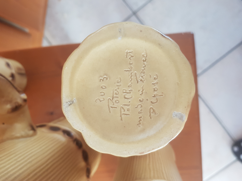 "Service à orangeade en céramique signé Pol Chambost.,année 2003. Comprend un pichet et 6 grands verres . Très bon état Le service ressemble a du bambou."