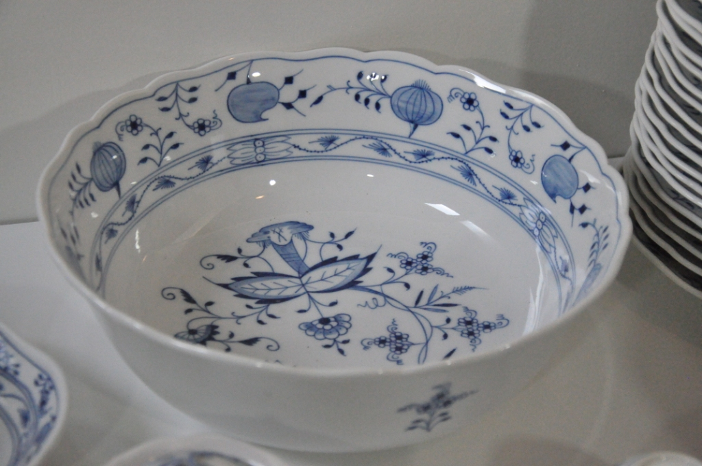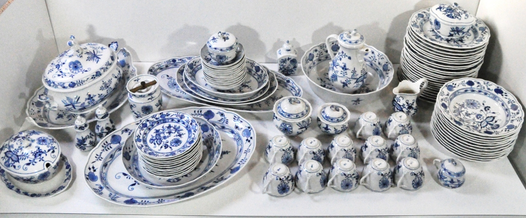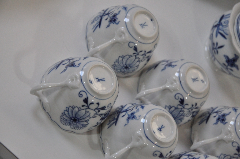 "Il s'agit d'un service Meissen constitué de 93 pièces en parfait état. (Une seule pièce ébréché, un capuchon de bonbonne laissant apparaître une fissure). - 24 Assiettes plates - 12 Assiettes creuses - 12 Assiettes à desserts - 1 Soupière - 1 Plat ovale (40cm de diamètre) - 1 Grand plat à poisson (Longueur 54cm) - 1 Grand plat ovale (Longueur 45cm) - 1 Plat ovale (Longueur 35cm) - 1 Plat ovale (Longueur 30cm) - 1 Plat ovale (Longueur 30cm) - 1 Plat creux (Longueur 26cm de diamètre) - 1 Grand Saladier (Longueur 30cm de diamètre) - 1 Grande saucière (Longueur 25cm) - 1 Baratte à beurre - 1 Poivrier - 1 Salière - 5 Pots de différentes tailles ( Sucrier, Pot à lait, pôt à crème ect) - 1 Cruche à lait - 1 Bonbonne décorative (capuchon ébréché) - 12 Tasses à café - 12 soucoupes - 1 Cafetière Vous souhaitant bonne réception, je vous prie dans l'attente de recevoir mes salutations les meilleures."