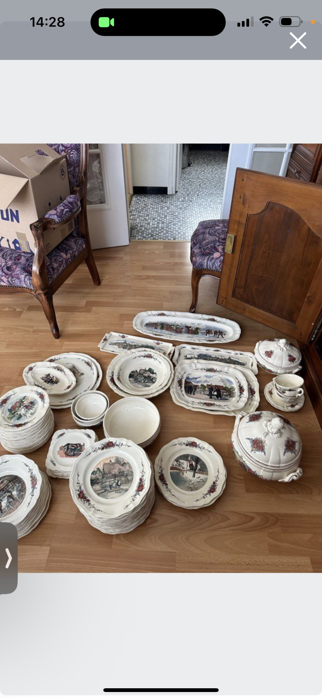 "Très beau service Obernai En très bon état. 2grandes assiettes à fromage et dessert 1 très grand plat long ovale 2 plats creux 2 plats rectangulaires 2 plats longs 2 soupières 2 tasses à café avec 2 soucoupes 1 saladier et 2 plus petits 2 petits plats ovales 26 assiettes plates 12 assiettes creuses 8 assiettes à fromage 20 assiettes à dessert"