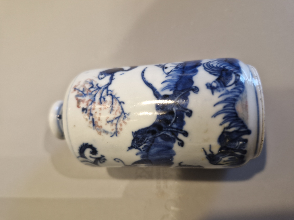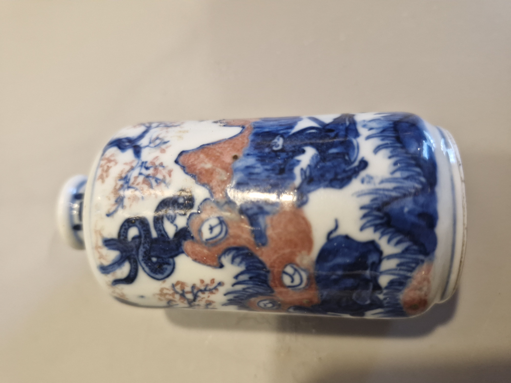 "Tabatière bleu et rouge, Yongzheng dynastie Quing 18ème, signé. État impeccable. Achat vide grenier."