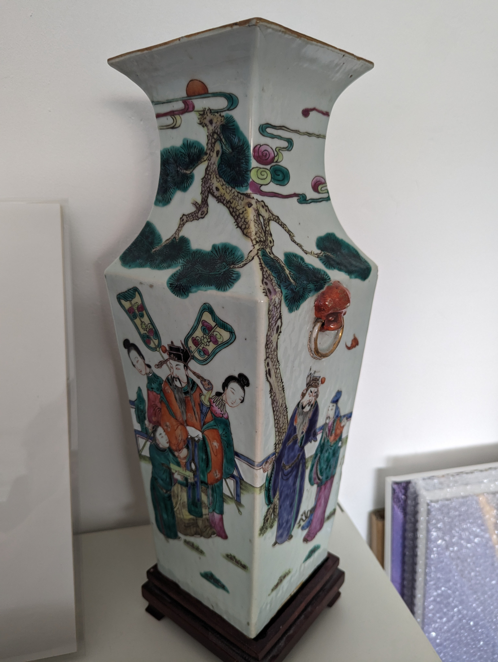 "Ce vase est dans la famille depuis longtemps. Pas de signature ou d'inscription apparente. Probablement chiné par ma mère, je souhaiterai en savoir plus : Origine, époque, estimation, ? Merci d'avance."