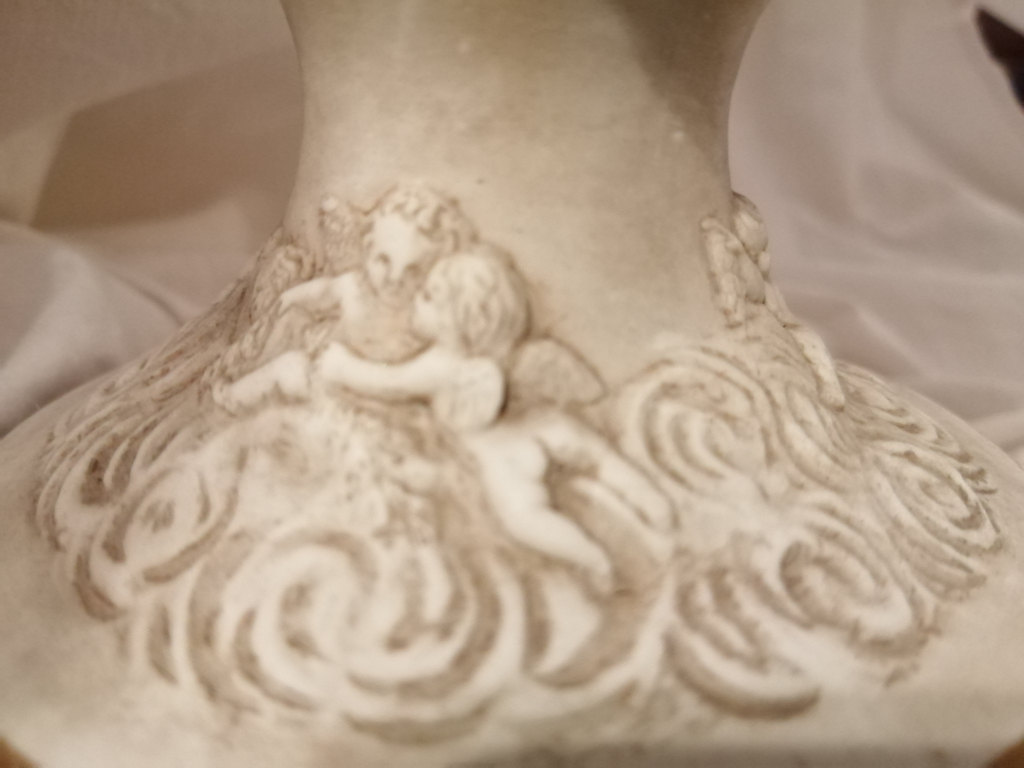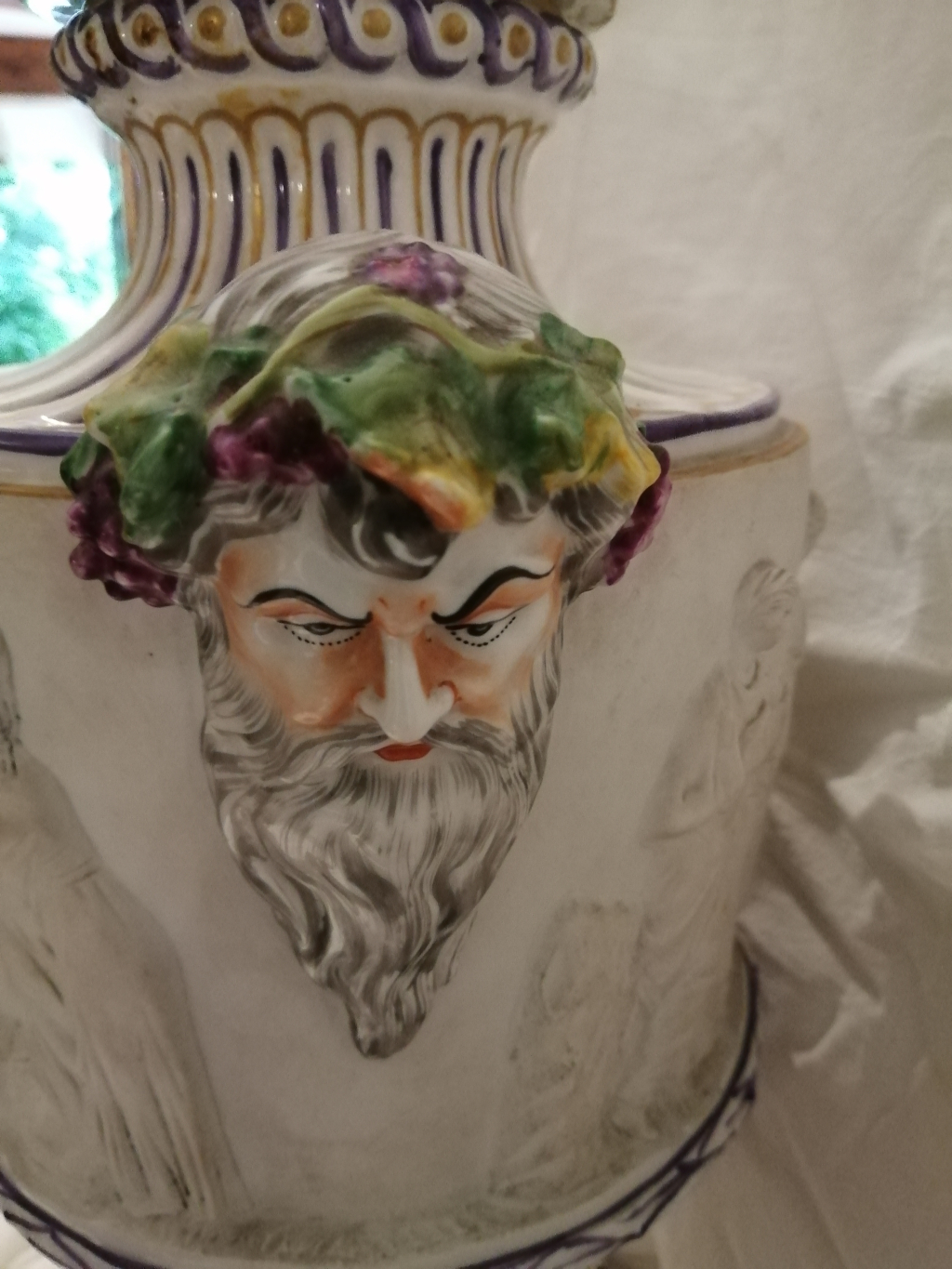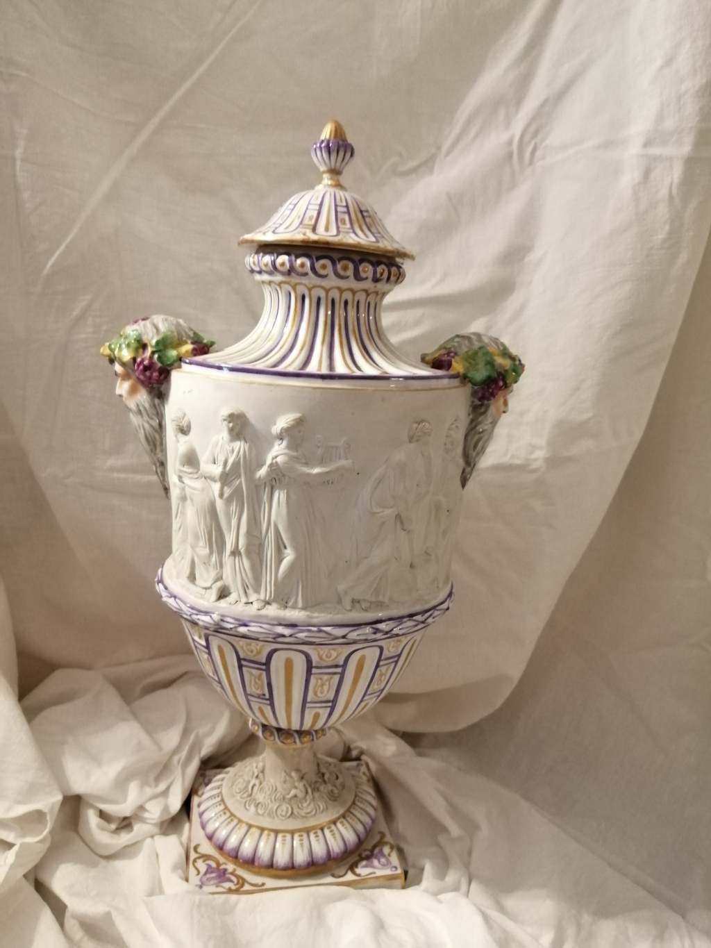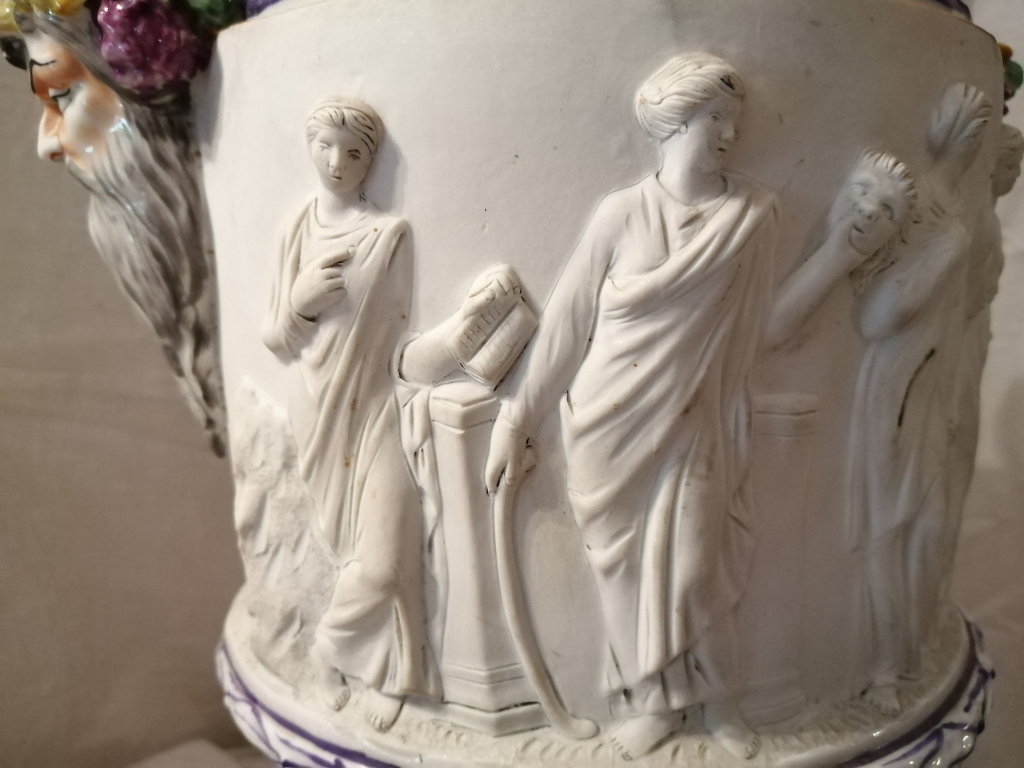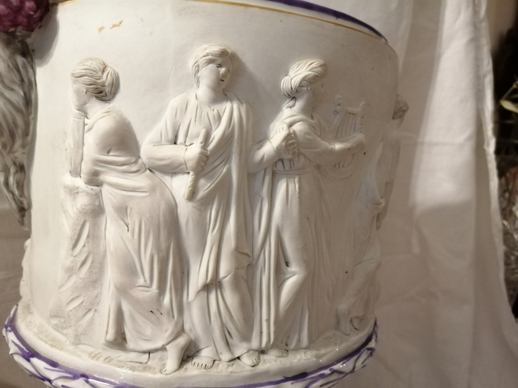 "Vase important en porcelaine et biscuit avec des scènes mitologiques. En bon état. Du 1770 environ (marqué avec la lettre S)."
