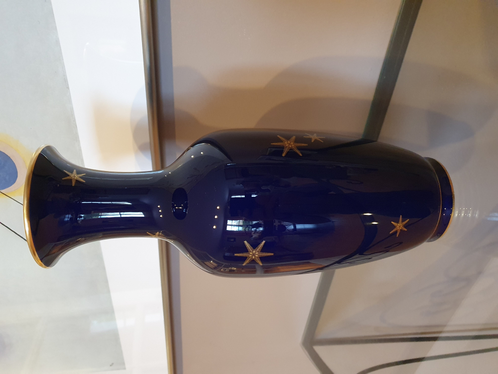 "Vase de Sèvres bleu et or, siglé et daté de 1925, parfait état, 32 cm x 12 cm"