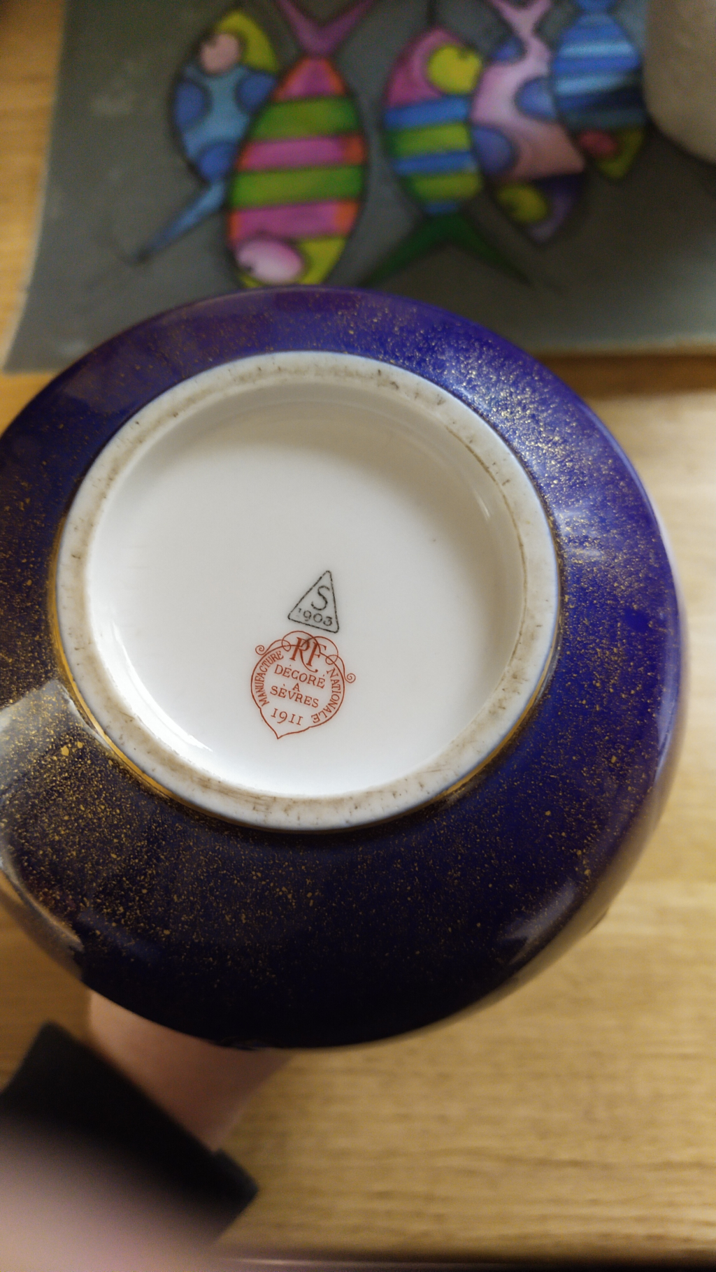 "Porcelaines de bleu de sevres daté de 1903 et et signé par la manufacture nationale de sèvre"