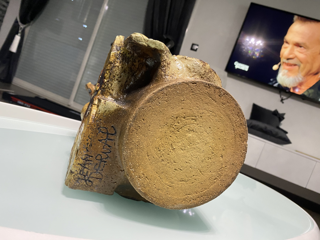 "Vase Jean Derval en parfait état aucune brochure il fait à peu près 40cm J’aimerais savoir une estimation et si cela vous intéresse vous me le dites merci cordialement"