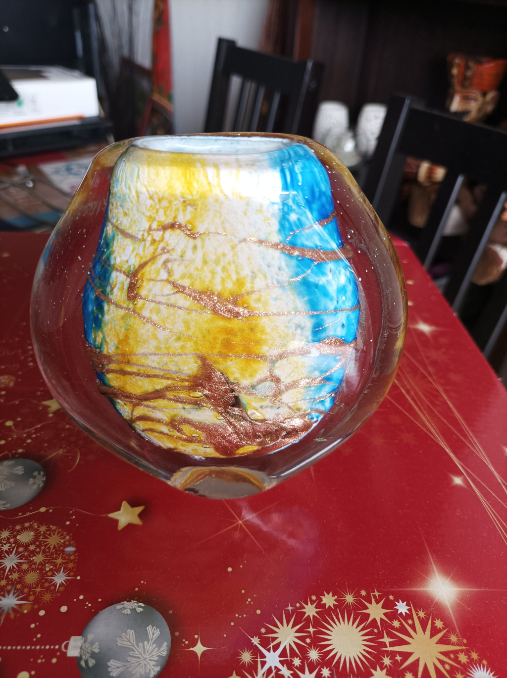 "Bonjour Vase bleu de 12 cm et le vert 17 cm. Signés Michèle Luzoro mais est ce bien sa signature ? Quelques rayures sur le vase vert Merci Cordialement"