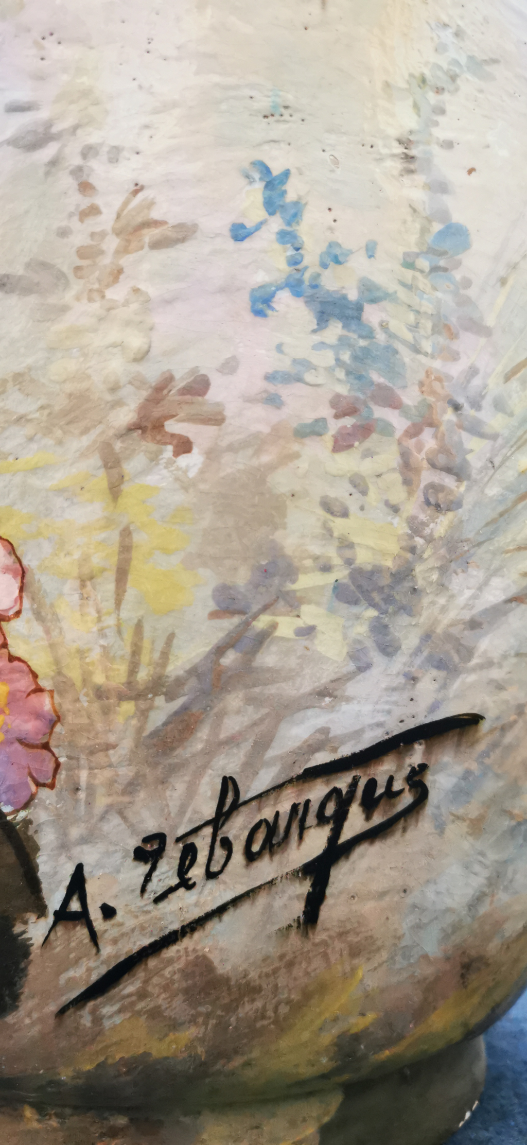 "Bonjour, Je me permets de vous contacter car je dispose d’un vase de 80 cm sur 40 cm où je ne trouve pas l’artiste afin avoir une estimation pour le vendre. Pourriez-vous me dire si il y a un marcher pour ces produits ? Je vous joints quelques photos afin d’avoir une idée Merci d’avance pour votre retour Courtois Eric Gsm **.**.**.**.**"