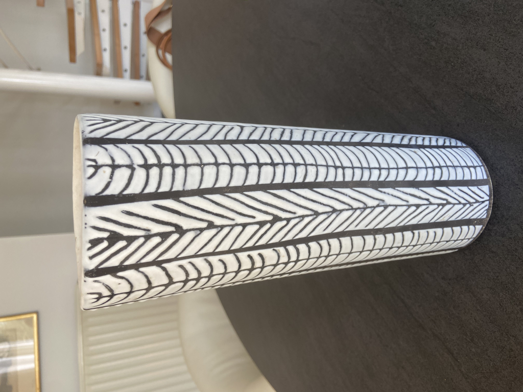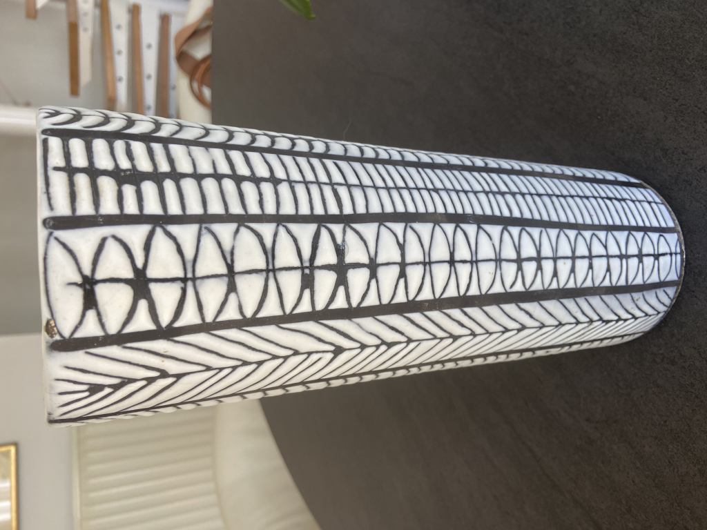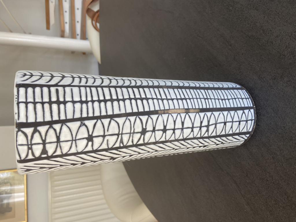 "Vase signé Capron Vallauris. A servi mais en bon état. Un éclat en haut du vase. 31 cm de haut et 12 de diamètre."
