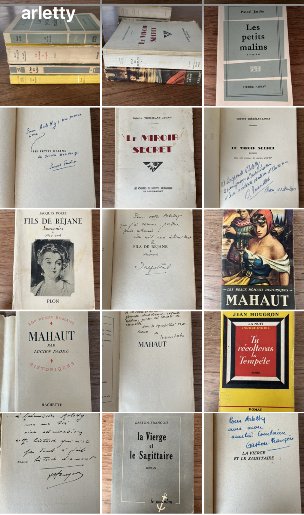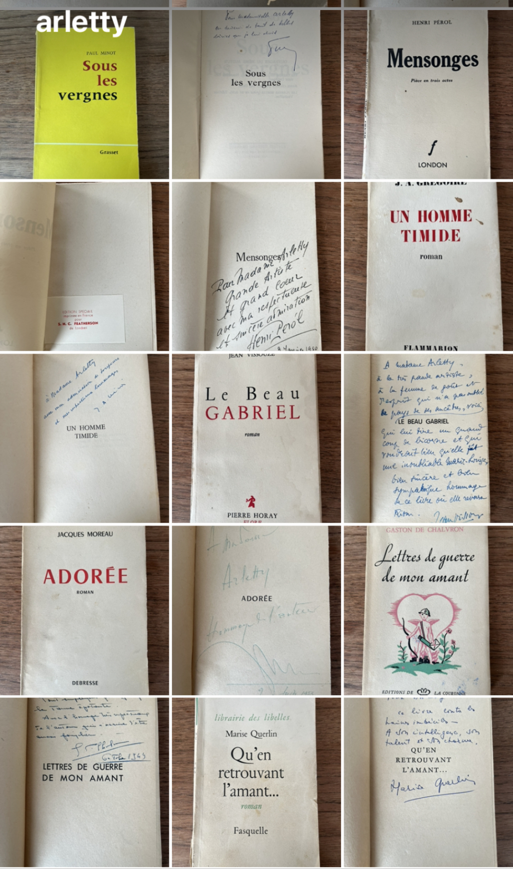 "19 livres dédicacés des années 50 envoyés par les auteurs à Arletty."