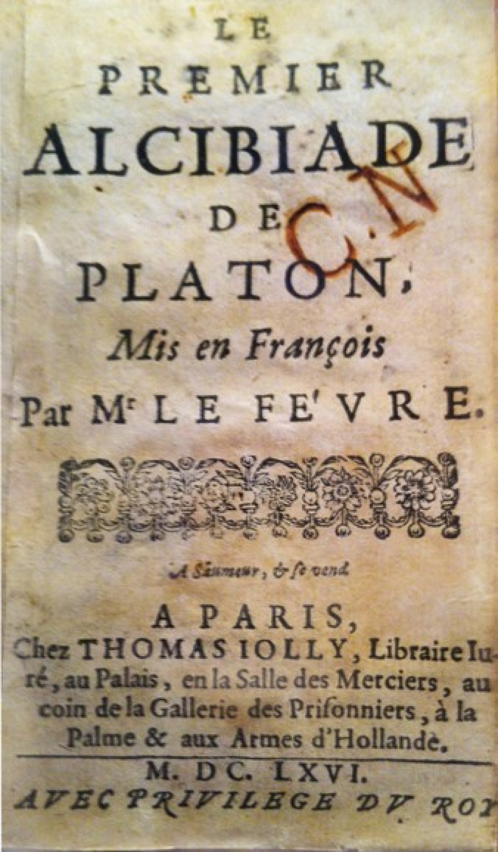 France estimations a reçu la demande d'estimation suivante intitulée par le déposant : 1er Alcibiade de Platon 1665 traduit par l'érudit Lefevre Tanneguy ( 1615-1672).